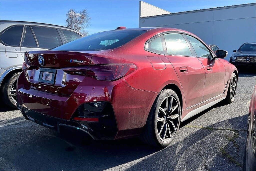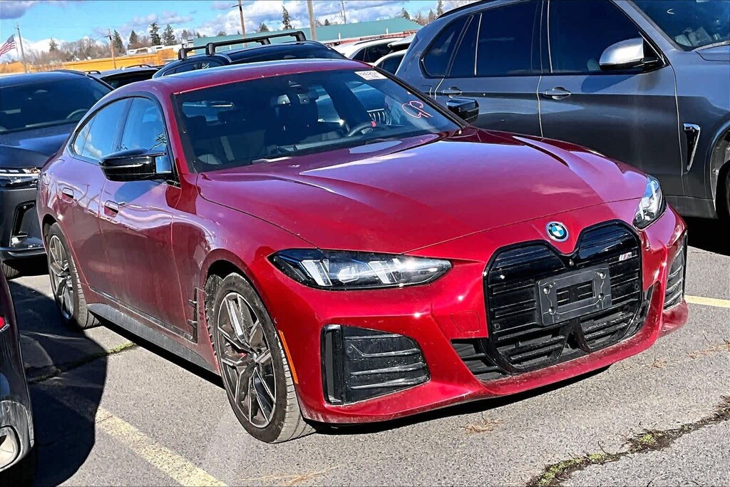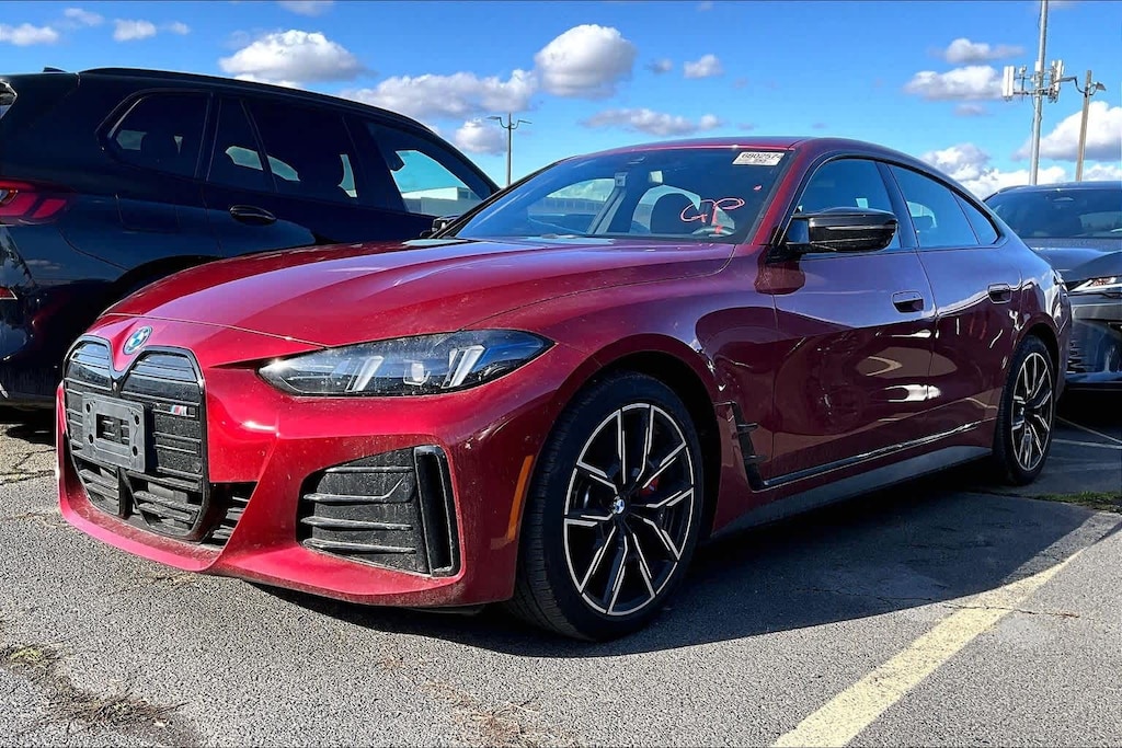 AVAILABLE FOR BMW LEASING!!!!! CARFAX One-Owner. Clean CARFAX. Red 2025 BMW i4 M50 AWD Single-Speed Automatic Electric Motor 10 Speakers, 4-Wheel Disc Brakes, ABS brakes, Adaptive suspension, Air Conditioning, Alloy wheels, Apple CarPlay & Android Auto Compatibility, Audio memory, Auto High-beam Headlights, Auto-dimming door mirrors, Auto-dimming Rear-View mirror, Automatic temperature control, BMW Assist eCall, BMW TeleServices, Brake assist, Bumpers: body-color, Compass, Connected Package Pro, ConnectedDrive Services, Delay-off headlights, Driver door bin, Driver vanity mirror, Dual front impact airbags, Dual front side impact airbags, Electronic Stability Control, Emergency communication system: BMW Assist eCall, Exterior Parking Camera Rear, Four wheel independent suspension, Front anti-roll bar, Front Bucket Seats, Front Center Armrest, Front dual zone A/C, Front reading lights, Fully automatic headlights, Garage door transmitter, Heated door mirrors, Heated Front Seats, Heated front seats, Hi-Fi Sound System, HVAC memory, Illuminated entry, Knee airbag, Leather steering wheel, Low tire pressure warning, Lumbar Support, Memory seat, Navigation, Navigation system: BMW Maps Navigation, Occupant sensing airbag, Outside temperature display, Overhead airbag, Overhead console, Panic alarm, Passenger door bin, Passenger vanity mirror, Perforated Sensatec Upholstery, Personal eSIM 5G, Power door mirrors, Power driver seat, Power Front Seats, Power Liftgate, Power moonroof, Power passenger seat, Power steering, Power windows, Radio data system, Radio: FM Audio System, Rain sensing wipers, Rear anti-roll bar, Rear reading lights, Rear seat center armrest, Rear window defroster, Remote keyless entry, Security system, SiriusXM Satellite Radio w/1 Year Subscription, Speed control, Speed-sensing steering, Speed-Sensitive Wipers, Split folding rear seat, Sport Seats, Sport steering wheel, Steering wheel mounted audio controls, Telescoping steering wheel, Tilt steering wheel, Traction control, Trip computer, Turn signal indicator mirrors, Variably intermittent wipers, Wheels: 19 x 8.5 Fr 19 x 9.0 Rr M Double-Spoke, Widescreen Display.