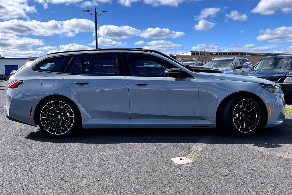 CARFAX One-Owner. Clean CARFAX. Brooklyn Grey Metallic 2026 BMW M5 TOURING AWD 8-Speed Automatic Sport 4.4L V8 Turbocharged DOHC 32V LEV3-SULEV30 Black Leather, 18 Speakers, 4-Wheel Disc Brakes, ABS brakes, Adaptive suspension, Air Conditioning, Alloy wheels, AM/FM radio: SiriusXM with 360L, Apple CarPlay and Android Auto Compatibility, Auto High-beam Headlights, Auto tilt-away steering wheel, Auto-dimming door mirrors, Auto-dimming Rear-View mirror, Automatic temperature control, BMW Assist ECall, BMW Curved Display with HUD, BMW Iconic Glow Kidney Grille, BMW TeleServices, Bowers & Wilkins Surround Sound, Brake assist, Bumpers: body-color, Carbon Fiber Silver Thread High Gloss Trim, Connected Package Pro Limited Term, ConnectedDrive Services, Delay-off headlights, Driver door bin, Driver vanity mirror, Driving Assistance Professional Package, Driving Assistant Professional, Dual front impact airbags, Dual front side impact airbags, Electronic Stability Control, Emergency communication system: BMW Assist eCall, Executive Package, Extended Merino Leather Upholstery, Exterior Parking Camera Rear, Four wheel independent suspension, Front and Rear Heated Seats, Front anti-roll bar, Front Bucket Seats, Front Center Armrest, Front dual zone A/C, Front reading lights, Front Ventilated Seats, Fully automatic headlights, Garage door transmitter, Head restraints memory, Heads-Up Display, Heated door mirrors, Heated Front Seats, Heated front seats, Heated steering wheel, Illuminated entry, Interior Camera, Lane Change Assistant, Leather steering wheel, Low tire pressure warning, M Compound Brakes with Red Calipers, M Drive Professional, M Multi-Function Seats, Memory seat, Navigation System, Occupant sensing airbag, Outside temperature display, Overhead airbag, Panic alarm, Parking Assistant Plus, Partial Automated Driving, Passenger door bin, Passenger vanity mirror, Personal ESIM 5G, Power adjustable front head restraints, Power door mirrors, Power driver seat, Power Front Seats, Power Liftgate, Power passenger seat, Power steering, Power windows, Radio data system, Radio: AM/FM Audio System, Rain sensing wipers, Rear air conditioning, Rear anti-roll bar, Rear dual zone A/C, Rear Manual Side Window Shades, Rear reading lights, Rear seat center armrest, Rear window defroster, Remote keyless entry, Security system, SiriusXM with 360L and 1 Year Trial Subscription, Speed control, Speed-sensing steering, Speed-Sensitive Wipers, Split folding rear seat, Spoiler, Sport steering wheel, Steering wheel memory, Steering wheel mounted audio controls, Tachometer, Telescoping steering wheel, Tilt steering wheel, Traction control, Traffic Jam Assistant, Trip computer, Turn signal indicator mirrors, Variably intermittent wipers, Wheels: 20 x 10.5 Front and 21 x 11 Rear M Dual-Spoke, Wireless Device Charging, Black Leather.