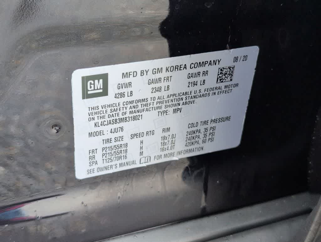 This Encore Preferred is nicely equipped with Preferred Equipment Group 1SB, Safety Package (120-Volt Power Outlet, Rear Cross Traffic Alert, and Side Blind Zone Alert), 18 Aluminum Wheels, 2-Way Manual Front Passenger Seat Adjuster, 3.53 Final Drive Axle Ratio, 4-Wheel Disc Brakes, 6 Speakers, 6-Speaker Audio System, 6-Way Power Driver Seat Adjuster, ABS brakes, Air Conditioning, Alloy wheels, AM/FM radio: SiriusXM, Apple CarPlay/Android Auto, Brake assist, Bumpers: body-color, Cloth w/Leatherette Seat Trim, Compass, Delay-off headlights, Driver door bin, Driver vanity mirror, Drivers Seat Mounted Armrest, Dual front impact airbags, Dual front side impact airbags, Electronic Stability Control, Emergency communication system: OnStar and Buick connected services capable, Exterior Parking Camera Rear, Front anti-roll bar, Front Bucket Seats, Front License Plate Bracket, Front reading lights, Front wheel independent suspension, Fully automatic headlights, Heated door mirrors, Illuminated entry, Knee airbag, Leather steering wheel, Low tire pressure warning, Occupant sensing airbag, Outside temperature display, Overhead airbag, Panic alarm, Passenger door bin, Passenger vanity mirror, Power door mirrors, Power driver seat, Power steering, Power windows, Radio data system, Radio: 7 Diagonal Buick Infotainment System, Radio: Buick Infotainment System AM/FM Stereo (DISC), Rear seat center armrest, Rear side impact airbag, Rear window defroster, Rear window wiper, Remote keyless entry, Remote Vehicle Starter System, Ride & Handling Suspension, Roof rack: rails only, Security system, SiriusXM Radio, Speed control, Speed-sensing steering, Split folding rear seat, Spoiler, Steering wheel mounted audio controls, Tachometer, Telescoping steering wheel, Tilt steering wheel, Traction control, Trip computer, and Variably intermittent wipers. Price does not include licensing costs, registration fees, taxes and dealer doc fee of $899.50 which are to be paid by the consumer.