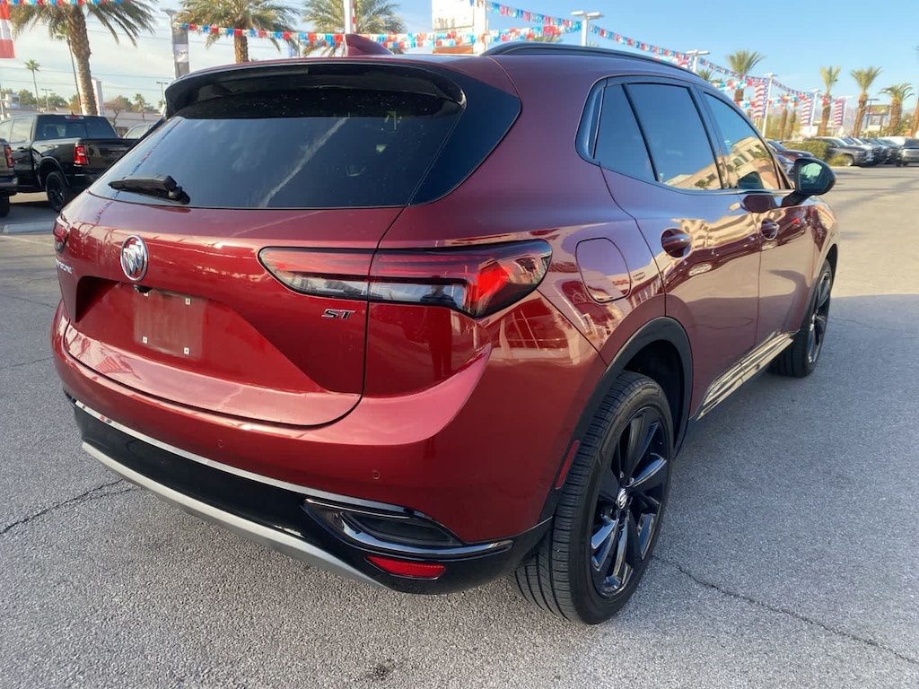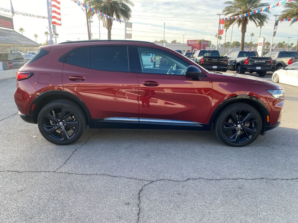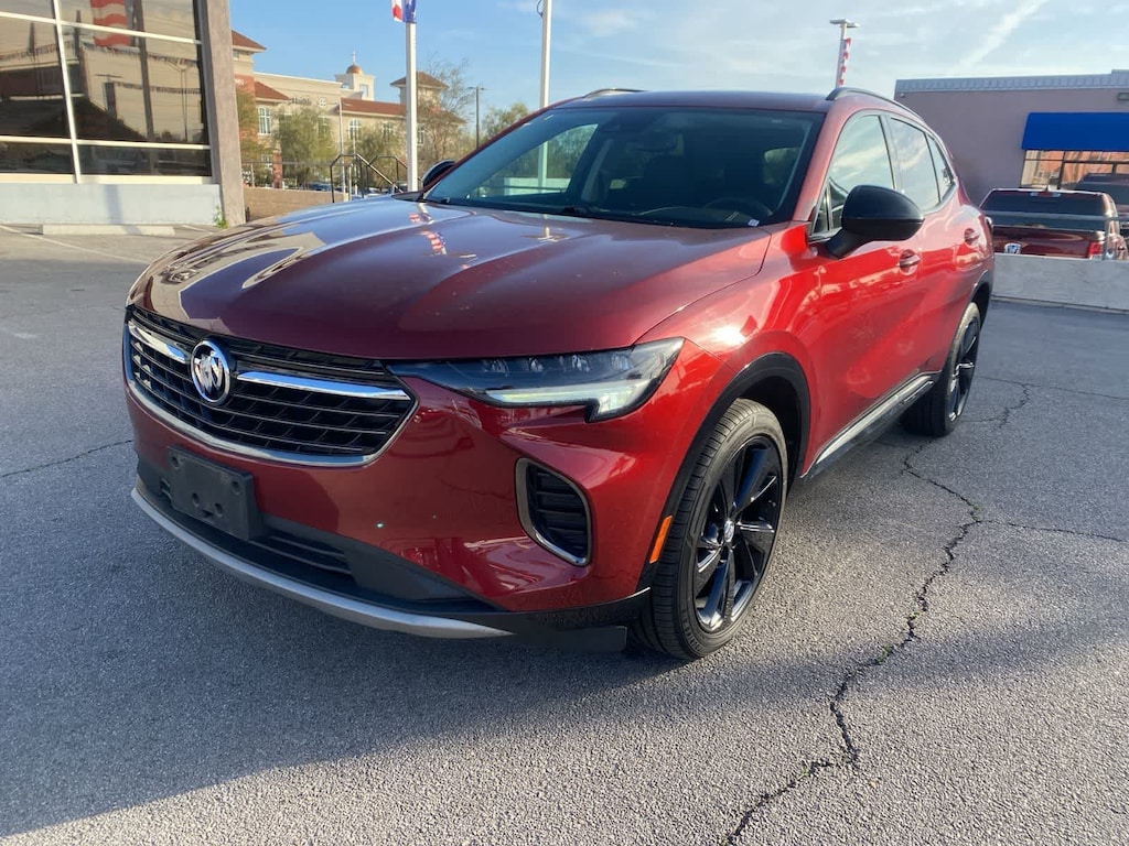 Own our assertive One Owner, Accident Free 2022 Buick Envision Essence with the Sport Touring Package in Cinnabar Metallic and put stressful driving in the rearview mirror! Motivated by a TurboCharged 2.0 Liter 4 Cylinder providing 228hp for a 9 Speed Automatic transmission with Driver Shift Control. Composed handling keeps you on the move in comfort with this Front Wheel Drive SUV that also achieves nearly 31mpg on the highway. Looking strong and stylish, our Envision greets you with LED lighting, heated power mirrors, bright body-side moldings, a hands-free tailgate with logo projection and the Sport Touring Packages 20-inch dark finish wheels, unique ST badging, black roof rails, and dark gloss window trim.
