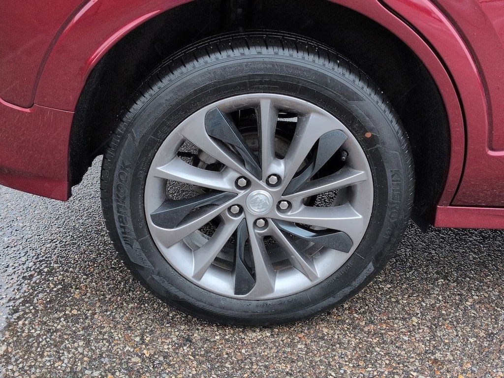 Boasting a striking Cinnabar Metallic exterior, the Encore GX Select commands attention with its bold, sculpted lines and distinctive Sport Touring styling cues. The custom grille with red accents, body-color rocker moldings, and 18-inch medium android high gloss wheels with dark android high gloss inserts create a refined, sporty aesthetic that is sure to turn heads. The hands-free power liftgate adds both convenience and a touch of sophistication to your daily routine.