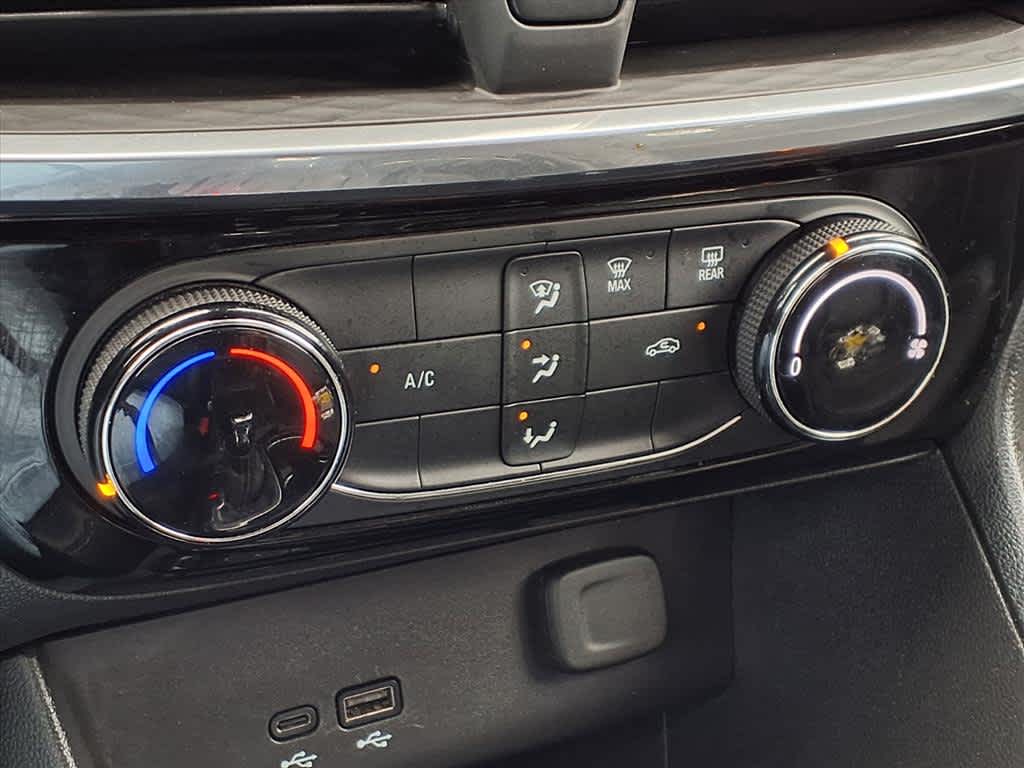 2 USB Ports (1 Type-A, 1 Type-C), 4-Way Manual Passenger Seat Adjuster, 4-Wheel Disc Brakes, 5.45 Final Drive Axle Ratio, 6 Speakers, 6-Way Manual Driver Seat Adjuster, ABS brakes, Air Conditioning, Alloy wheels, AM/FM radio: SiriusXM, Auto High-beam Headlights, Automatic temperature control, Brake assist, Bumpers: body-color, Compass, Delay-off headlights, Deleted 3 Years of OnStar Remote Access, Driver door bin, Driver vanity mirror, Dual front impact airbags, Dual front side impact airbags, Electronic Stability Control, Emergency communication system: OnStar and Buick connected services capable, Enhanced Performance 6-Speaker System, Front anti-roll bar, Front Bucket Seats, Front Center Armrest, Front reading lights, Front wheel independent suspension, Fully automatic headlights, Heated door mirrors, Illuminated entry, Knee airbag, Leatherette Seat Trim, Low tire pressure warning, Occupant sensing airbag, Outside temperature display, Overhead airbag, Overhead console, Panic alarm, Passenger door bin, Passenger vanity mirror, Power door mirrors, Power steering, Power windows, Preferred Equipment Group 1SD, Radio data system, Radio: Audio System w/AM/FM, Rear reading lights, Rear side impact airbag, Rear window defroster, Rear window wiper, Remote keyless entry, Ride & Handling Suspension, Security system, SiriusXM, Speed control, Speed-sensing steering, Split folding rear seat, Spoiler, Sport steering wheel, Steering wheel mounted audio controls, Tachometer, Telescoping steering wheel, Tilt steering wheel, Traction control, Trip computer, Variably intermittent wipers, Wheels: 18 Gloss Black Aluminum, Wireless Apple CarPlay/Wireless Android Auto.