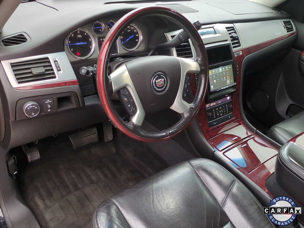 se habla Espanol! Our Accident Free 2013 Cadillac Escalade ESV Luxury AWD, shown in Black Ice Metallic will change your life. Powered by a 6.2 Liter V8 boasting 403hp paired with a 6 Speed Automatic transmission. This All Wheel Drive SUV provides an amazingly smooth ride and nearly 18mpg on the highway. In addition, Luxury adds beautiful 22-inch chromed aluminum wheels, a magnetically controlled adaptive suspension, automatic high beams, and a blind-spot warning system.