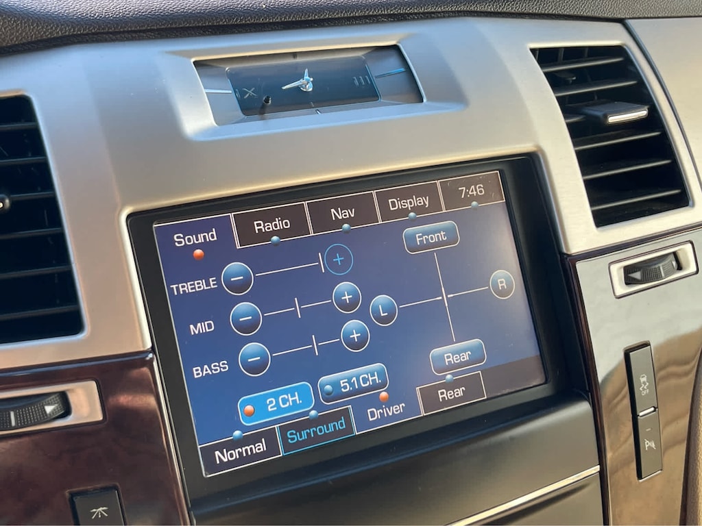 AUDIO SYSTEM WITH NAVIGATION, AM/FM/SIRIUSXM STEREO WITH MP3/CD/DVD VIDEO/AUDIO CHANGER compact flash, DSP, RDS, clock, voice recognition and USB interface (STD), ENGINE, VORTEC 6.2L V8 SFI (E85) with Active Fuel Management and E85 FlexFuel capability (403 hp [300.5 kW] @ 5700 rpm, 417 lb-ft of torque [562.9 N-m] @ 4300 rpm) (STD), TRANSMISSION, 6-SPEED AUTOMATIC, HEAVY-DUTY, 6L80E, ELECTRONICALLY CONTROLLED with overdrive and tow/haul mode (STD). Cadillac Premium with BLACK RAVEN exterior and CASHMERE W/ COCOA ACCENTS interior features a 8 Cylinder Engine with 403 HP at 5700 RPM*.