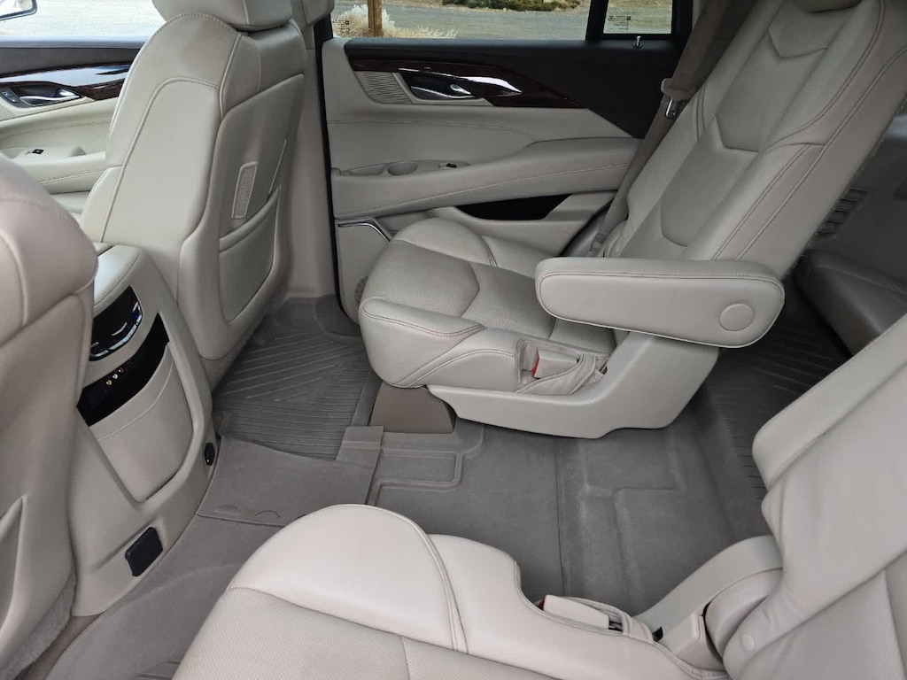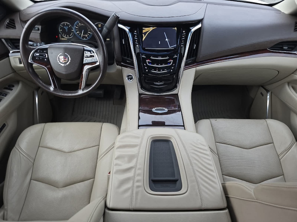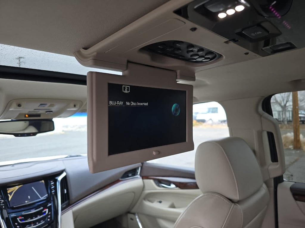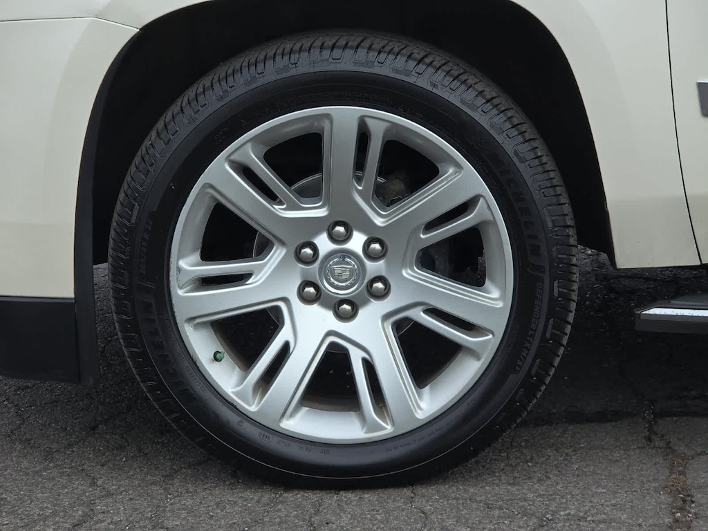 White 2015 Cadillac Escalade Premium 4WD 8-Speed Automatic Vortec 6.2L V8 SIDI 4WD, Shale/Cocoa Accents w/Leather Seating Surfaces, Adaptive Full-Speed Range Cruise Control, Automatic Safety Belt Tightening, Automatic temperature control, Bose Centerpoint Surround Sound System, Driver Assist Package, Driver Awareness Package, Forward Collision Alert, Front & Rear Automatic Braking, Front dual zone A/C, Heated & Cooled Front Bucket Seats, Lane Departure Warning System, Rear Seat Entertainment System, Theft-Deterrent Alarm System, Theft-Deterrent Package, Vehicle Inclination Sensor, Vehicle Interior Movement Sensor.