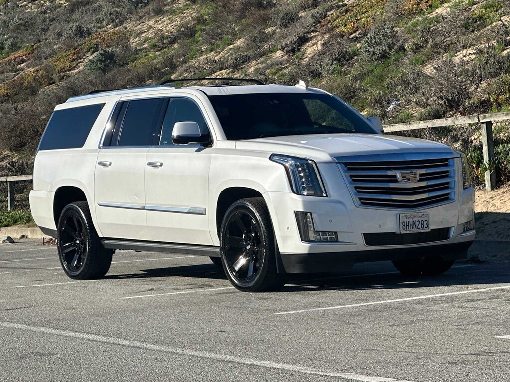 CADILLAC USER EXPERIENCE WITH EMBEDDED NAVIGATION AM/FM stereo with 8 diagonal color information display featuring touch response, haptic feedback, gesture recognition, Natural Voice Recognition, Phone Integration for Apple CarPlay® and Android Auto® capability for compatible phone, Connected Apps and Teen Driver. Five USB ports, including one in the articulating storage door/bin and auxiliary audio port (STD), ENGINE, 6.2L V8 WITH ACTIVE FUEL MANAGEMENT Spark Ignition Direct Injection (SIDI) and Variable Valve Timing (VVT), includes aluminum block construction (420 hp [313.2 kW] @ 5600 rpm, 460 lb-ft of torque [621 N-m] @ 4100 rpm) (STD), TRANSMISSION, 10-SPEED AUTOMATIC electronically controlled with overdrive, tow/haul mode and tap up/tap down shifting (STD). Cadillac Platinum with Crystal White Tricoat exterior and Jet Black with Jet Black Accents interior features a 8 Cylinder Engine with 420 HP at 5600 RPM*.