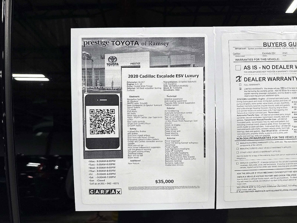This 2020 Cadillac Escalade ESV Luxury will not make it to the weekend!! CALL NOW to reserve your test drive!! (844) 838-7075 Please Visit www.PrestigeToyota.com for further details. Price does not include licensing costs, registration fees, taxes and dealer doc fee of $999 which are to be paid by the consumer.
