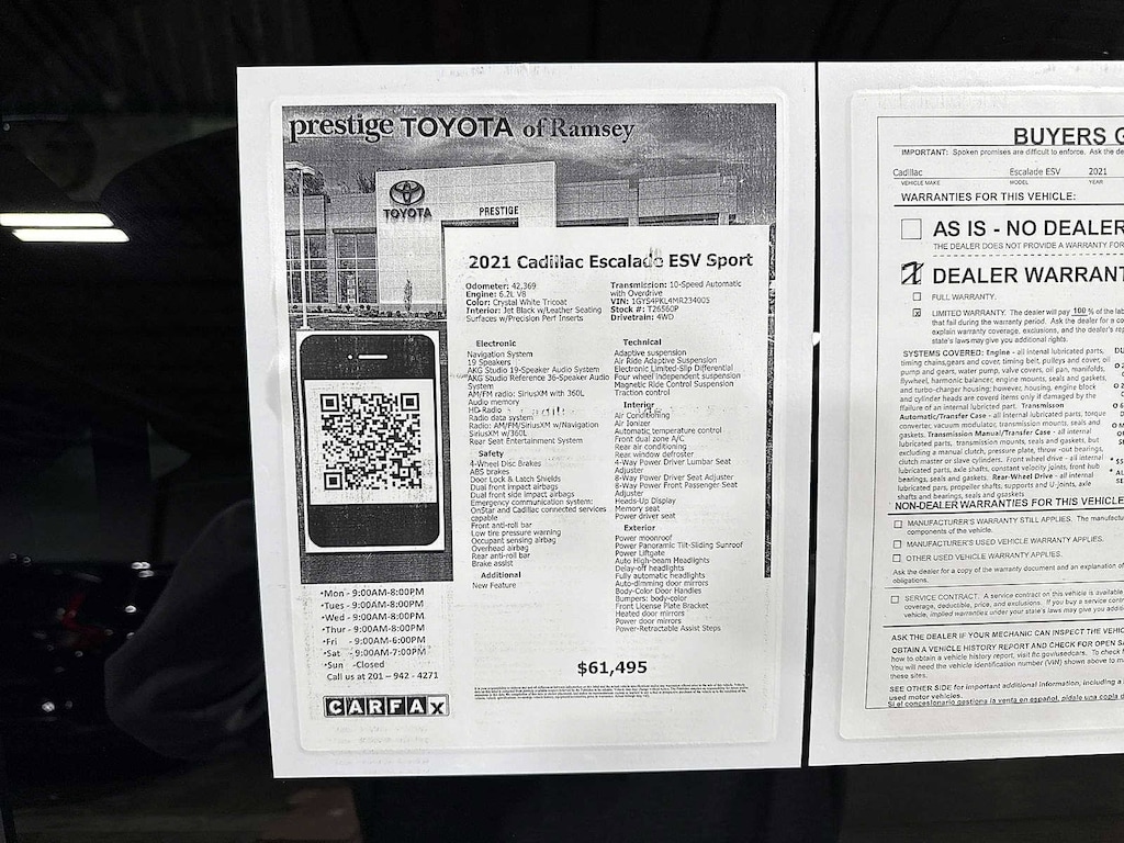 This 2021 Cadillac Escalade ESV Sport will not make it to the weekend!! CALL NOW to reserve your test drive!! (844) 838-7075 Please Visit www.PrestigeToyota.com for further details. Price does not include licensing costs, registration fees, taxes and dealer doc fee of $999 which are to be paid by the consumer.