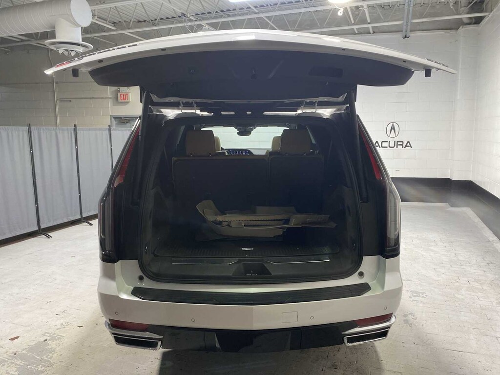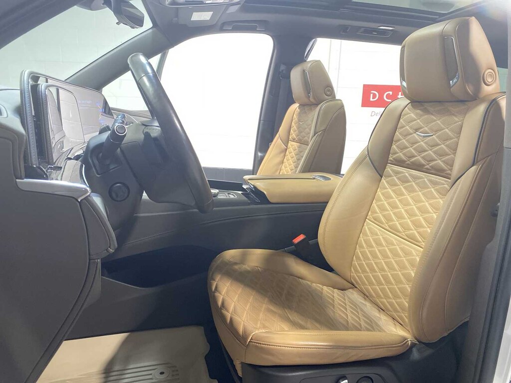 SUPER CRUISE a hands-free driver assistance system for use on compatible roads (Vehicles built between October, 2021 and December 5, 2021, will be forced to have (00U) Not Equipped with Super Cruise, which removes Super Cruise and its content. Beginning with production starting December 6, 2021, (UKL) Super Cruise will be forced on as standard content. Beginning with production starting May 9, 2022, vehicles will be forced to include (00U) Not Equipped with Super Cruise, which removes Super Cruise and its content. See dealer for details or the window label for the features on a specific vehicle. Always pay attention while driving and when using Super Cruise. Do not use a hand-held device. Visit cadillac.com/supercruise for compatible roads and full details.), OLED INFOTAINMENT EXPERIENCE WITH NAVIGATION AM/FM/SiriusXM with 360L with 16.9 diagonal color information display (displays and controls navigation, music and all features and functions of the vehicle), personalized profiles for each drivers settings, Natural Voice Recognition, Phone Integration for Wireless Apple CarPlay®/Wireless Android Auto® capability for compatible phone, Connected Apps and Teen Driver (STD), ENGINE, 6.2L V8 WITH DYNAMIC FUEL MANAGEMENT Direct Injection and Variable Valve Timing, includes aluminum block construction (420 hp [313.2 kW] @ 5600 rpm, 460 lb-ft of torque [623.7 Nm] @ 4100 rpm) (STD), TRANSMISSION, 10-SPEED AUTOMATIC electronically controlled with overdrive, tow/haul mode and tap up/tap down shifting (STD). Third Row Seat, Sunroof, Privacy Glass, Keyless Entry, Remote Trunk Release.