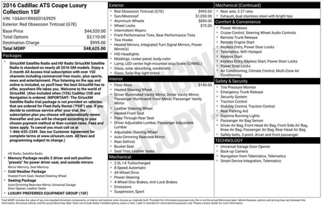 Red Obsession Tintcoat 2016 Cadillac ATS 2.0L Turbo Luxury 2D Coupe AWD 8-Speed Automatic 2.0L Turbo I4 DI DOHC VVT 22/30 City/Highway MPG
