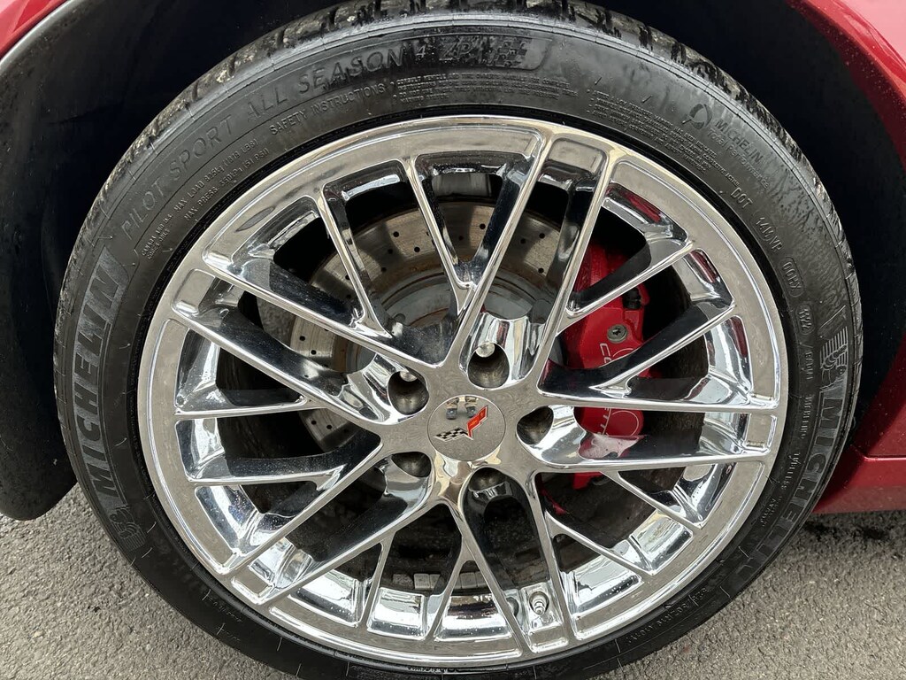 WHEELS, GRAND SPORT CHROME ALUMINUM 18 x 9.5 (45.7 cm x 24.1 cm) front and 19 x 12 (48.3 cm x 30.48 cm) rear, MAGNETIC SELECTIVE RIDE CONTROL for ultimate driver control and comfort through the use of driver-selected Tour or Sport modes. TRANSMISSION, 6-SPEED PADDLE SHIFT WITH AUTOMATIC MODES, REAR AXLE, 2.73 RATIO, LIMITED-SLIP, PERFORMANCE, ENGINE, 6.2L (376 CI) V8 SFI (430 hp [320.6 kW] @ 5900 rpm, 424 lb-ft of torque [572.4 N-m] @ 4600 rpm) (STD), AUDIO SYSTEM WITH NAVIGATION, AM/FM STEREO WITH CD PLAYER, MP3 PLAYBACK AND DVD-BASED TOUCH-SCREEN NAVIGATION USB port, auxiliary input jack, seek-and-scan, digital clock, auto-tone control, Radio Data System (RDS), automatic volume, TheftLock, 6.5 LCD color display and voice recognition. Chevrolet Z16 Grand Sport w/3LT with Crystal Red Tintcoat exterior and Ebony interior features a 8 Cylinder Engine with 430 HP at 5900 RPM*.