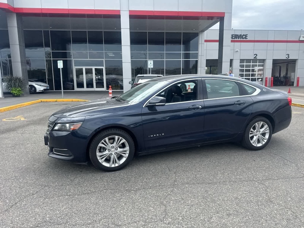 LT trim. Excellent Condition. EPA 29 MPG Hwy/19 MPG City! Smart Device Integration, WiFi Hotspot, Dual Zone A/C, Onboard Communications System, iPod/MP3 Input, Satellite Radio, Rear Air, Alloy Wheels, CD Player. CLICK NOW!<br /><br />KEY FEATURES INCLUDE<br />Rear Air, Satellite Radio, iPod/MP3 Input, CD Player, Onboard Communications System, Aluminum Wheels, Dual Zone A/C, WiFi Hotspot, Smart Device Integration MP3 Player, Remote Trunk Release, Keyless Entry, Child Safety Locks, Steering Wheel Controls. Chevrolet LT with Blue Velvet Metallic exterior and Jet Black interior features a V6 Cylinder Engine with 305 HP at 6800 RPM*. Non-Smoker vehicle, Last scheduled maintenance service performed <br /><br />EXPERTS REPORT<br />Edmunds.com explains A generous wheelbase gives the Impala serious passenger space front and rear. Four 6-footers could do a cross-country road trip in perfect comfort; thats what we expect from a large sedan, and the Impala certainly delivers.. Great Gas Mileage: 29 MPG Hwy. <br /><br />EXCELLENT VALUE<br />AutoCheck One Owner <br /><br />WHY BUY FROM US<br />Lithia Toyota of Billings serving the greater Billings, MT area offers great prices, rebates, parts and service for new and used Toyota cars, vans and SUVs to all of our neighbors in Great Falls Montana, Missoula Montana, Helena Montana, and Bozeman Montana. Our Expert Service & Parts staff is here to assist our Billings, Montana customers in keeping their Toyotas in great shape. <br /><br />Price does not include title, license, or $499 dealer doc fees.<br />