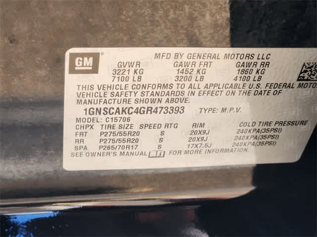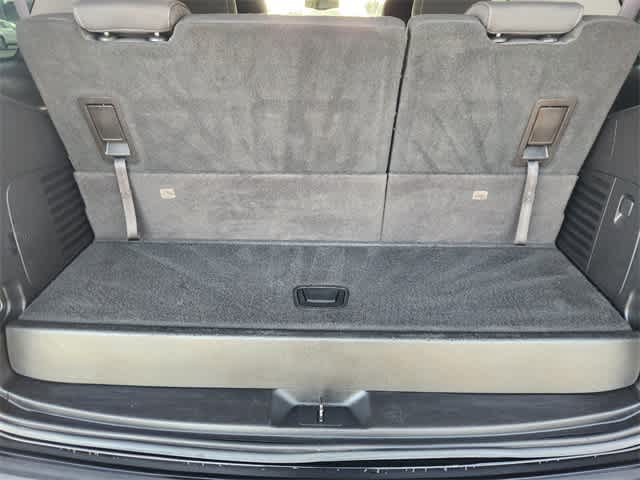 Black Cloth, 18 x 8.5 Aluminum Wheels, 1st & 2nd Row Color-Keyed Carpeted Floor Mats, 2nd Row 60/40 Split-Folding Manual Bench, 3rd Row Manual 60/40 Split-Folding Fold Flat Bench, 3rd row seats: split-bench, 4-Wheel Antilock Disc Brakes, 4-Wheel Disc Brakes, 6 Speakers, 6-Speaker Audio System Feature, 6-Way Power Front Passenger Seat Adjuster, ABS brakes, Air Conditioning, Alloy wheels, AM/FM radio: SiriusXM, Apple CarPlay, Automatic temperature control, Black Assist Steps, Brake assist, Bumpers: body-color, CD player, Color-Keyed Carpeting Floor Covering, Compass, Delay-off headlights, Driver door bin, Driver Inboard & Front Passenger Airbags, Driver vanity mirror, Dual front impact airbags, Dual front side impact airbags, Electronic Cruise Control w/Set & Resume Speed, Electronic Stability Control, Emergency communication system: OnStar, Enhanced Driver Instrument Information Display, Extended-Range Remote Keyless Entry, Exterior Parking Camera Rear, Floor Console, Front & Rear Black Bowtie Emblems (LPO), Front anti-roll bar, Front Bucket Seats, Front Center Armrest, Front dual zone A/C, Front High-Back Reclining Bucket Seats, Front reading lights, Front wheel independent suspension, Fully automatic headlights, Heated door mirrors, Illuminated entry, Leather-Wrapped Steering Wheel, License Plate Front Mounting Package, Low tire pressure warning, Occupant sensing airbag, OnStar Basic Plan For 5 Years, Outside temperature display, Overhead airbag, Overhead console, Panic alarm, Passenger door bin, Passenger vanity mirror, Polished Exhaust Tip, Power door mirrors, Power driver seat, Power passenger seat, Power steering, Power windows, Preferred Equipment Group 1LS, Premium audio system: Chevrolet MyLink, Premium Cloth Seat Trim, Premium Smooth Ride Suspension Package, Radio: Chevrolet MyLink AM/FM Stereo, Rear air conditioning, Rear anti-roll bar, Rear Park Assist w/Audible Warning, Rear reading lights, Rear seat center armrest, Rear window defroster, Remote keyless entry, Roof rack: rails only, Roof-Mounted Luggage Rack Side Rails, Security system, Single-Slot CD/MP3 Player, SiriusXM Satellite Radio, Speed control, Speed-sensing steering, Split folding rear seat, Spoiler, Steering wheel mounted audio controls, Tachometer, Tilt steering wheel, Traction control, Trip computer, Voltmeter, Wheels: 20 x 9 Polished-Aluminum. Clean CARFAX.
