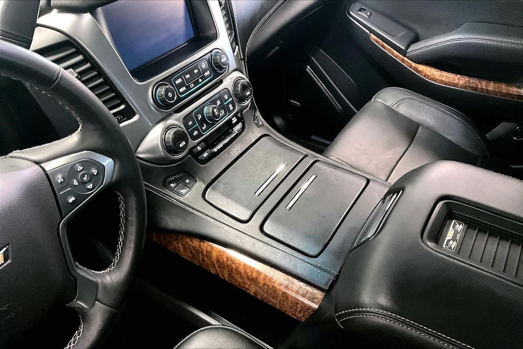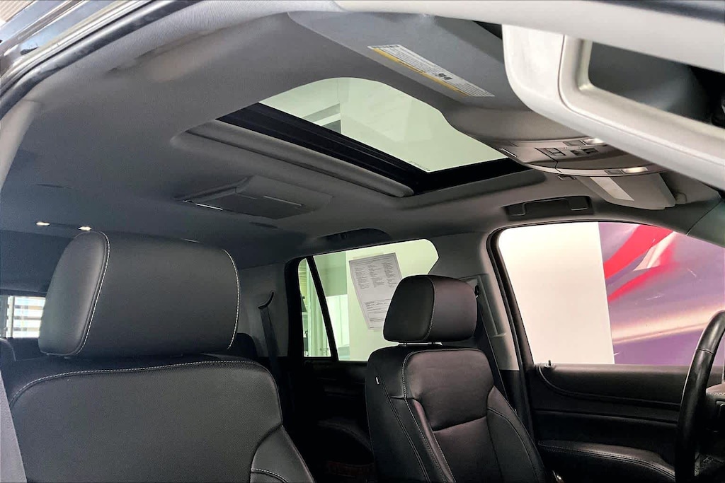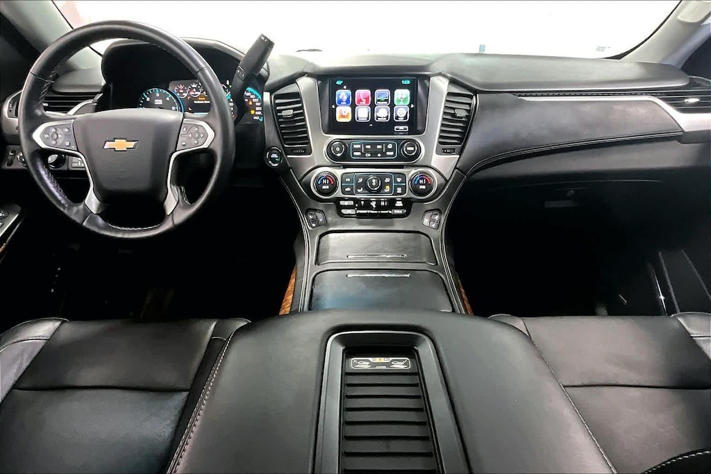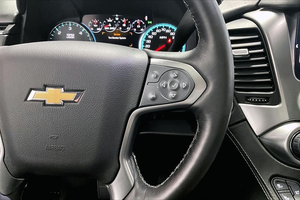 Tahoe LTZ is nicely equipped with License Plate Front Mounting Package, Magnetic Ride Control Suspension Package, Max Trailering Package (2-Speed Active Electronic AutoTrac Transfer Case and Integrated Trailer Brake Controller), Preferred Equipment Group 1LZ (1st & 2nd Row Color-Keyed Carpeted Floor Mats, 3rd Row 60/40 Power Fold Split-Bench, 4-Wheel Antilock Disc Brakes, 5 12-Volt Auxiliary Power Outlets, Auto-Dimming Inside Rear-View Mirror, Black Assist Steps w/Chrome Accent Strip, Bose Centerpoint Premium 10-Speaker Surround Sound, Color-Keyed Carpeting Floor Covering, Driver Inboard & Front Passenger Airbags, Electronic Cruise Control w/Set & Resume Speed, Enhanced Driver Instrument Information Display, Floor Console, Fog Lamps, Front & Rear Parking Assist, Hands Free Power Liftgate, Heated 2nd Row Seats, Heated Leather Wrapped Steering Wheel, Memory Settings, OnStar Basic Plan For 5 Years, Passive Entry System, Power Release 2nd Row Bucket Seats, Power Tilt & Telescoping Steering Column, Power-Adjustable Accelerator & Brake Pedals, Power-Folding Heated Outside Mirrors, Push Button Keyless Start, Rear Cross-Traffic Alert, Remote Keyless Entry, Roof-Mounted Luggage Rack Side Rails, Side Blind Zone Alert w/Lane Change Alert, SiriusXM Satellite Radio, Universal Home Remote, and Wireless Charging), Sun, Entertainment & Destinations Package (Power Sunroof and Rear Seat Blu-Ray/DVD Entertainment System), 4WD, Jet Black Leather, 10 Speakers, 3rd row seats: split-bench, 4-Wheel Disc Brakes, 6-Way Power Front Passenger Seat Adjuster, ABS brakes, Adaptive suspension, Adjustable pedals, Air Conditioning, Alloy wheels, AM/FM radio: SiriusXM, Apple CarPlay, Auto High-beam Headlights, Auto-dimming door mirrors, Auto-dimming Rear-View mirror, Automatic temperature control, Bodyside moldings, Brake assist, Bumpers: body-color, CD player, Compass, Delay-off headlights, Driver door bin, Driver vanity mirror, Dual front impact airbags, Dual front side impact airbags, Electronic Stability Control, Emergency communication system: OnStar, Enhanced Driver Information Center, Exterior Parking Camera Rear, Forward Collision Alert Sensor Indicator, Front anti-roll bar, Front Bucket Seats, Front Center Armrest, Front dual zone A/C, Front fog lights, Front Heated Reclining Bucket Seats, Front reading lights, Front wheel independent suspension, Fully automatic headlights, Garage door transmitter, Head-Up Display, Heated & Cooled Driver & Front Passenger Seats, Heated door mirrors, Heated front seats, Heated rear seats, Heated steering wheel, High-Intensity Discharge Headlights, Illuminated entry, IntelliBeam Headlamps, Lane Departure Warning System, Lane Keep Assist, Low tire pressure warning, Memory seat, Navigation System, Occupant sensing airbag, Outside temperature display, Overhead airbag, Overhead console, Panic alarm, Passenger door bin, Passenger vanity mirror, Pedal memory, Perforated Leather-Appointed Seat Trim, Power door mirrors, Power driver seat, Power Liftgate, Power passenger seat, Power steering, Power windows, Premium audio system: Chevrolet MyLink, Radio: Chevrolet MyLink w/Navigation/AM/FM Stereo, Rain sensing wipers, Rear air conditioning, Rear anti-roll bar, Rear reading lights, Rear window defroster, Rear window wiper, Remote keyless entry, Roof rack: rails only, Safety Alert Driver Seat, Security system, Single-Slot CD/MP3 Player, Speed control, Speed-sensing steering, Split