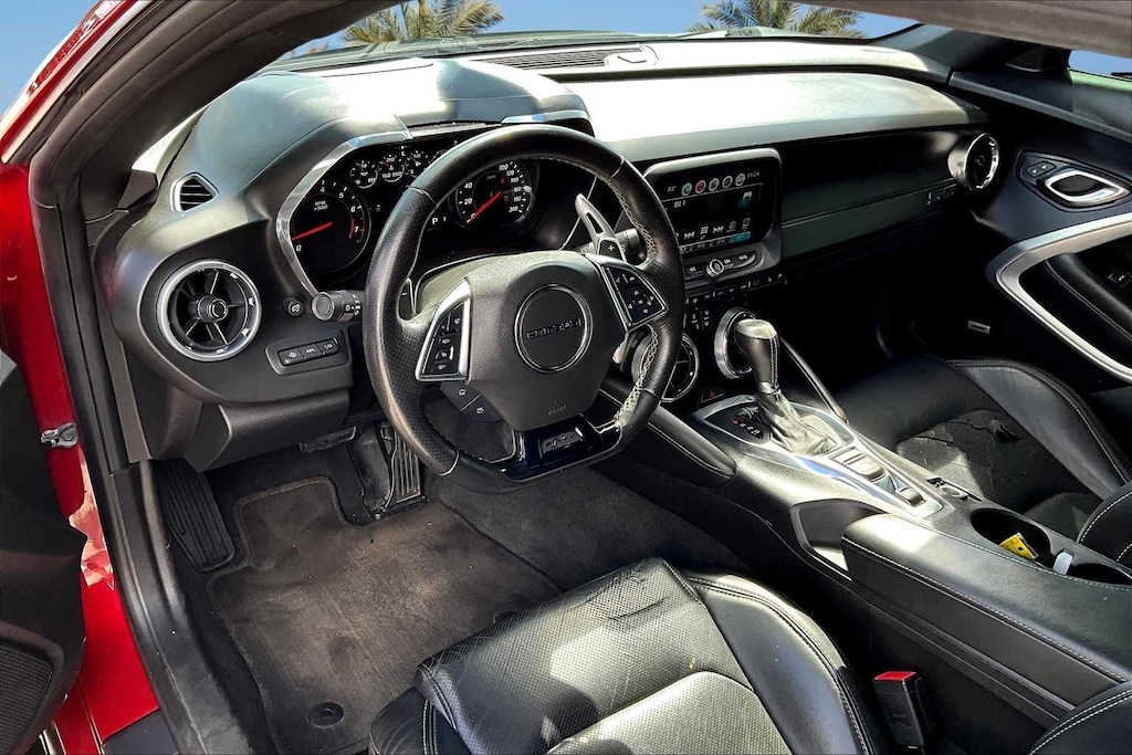 FRESH OIL CHANGE, 2 USB Ports & Auxiliary Input Jack, 2.77 Rear Axle Ratio, 4-Wheel Disc Brakes, 9 Speakers, ABS brakes, Air Conditioning, Alloy wheels, AM/FM radio: SiriusXM, Apple CarPlay/Android Auto, Auto-dimming door mirrors, Auto-dimming Rear-View mirror, Automatic temperature control, Bose Premium 9-Speaker Audio System Feature, Brake assist, Bumpers: body-color, Compass, Delay-off headlights, Driver door bin, Driver vanity mirror, Dual front impact airbags, Dual front side impact airbags, Electronic Stability Control, Emergency communication system, Exterior Parking Camera Rear, Four wheel independent suspension, Front anti-roll bar, Front Bucket Seats, Front Center Armrest, Front dual zone A/C, Front fog lights, Front License Plate Bracket, Front reading lights, Front Sport Bucket Seats, Fully automatic headlights, Garage door transmitter, Heads-Up Display, Heated door mirrors, Heated front seats, Heated steering wheel, High-Intensity Discharge Headlights, Illuminated entry, Knee airbag, Leather Shift Knob, Leather-Trimmed Seat Trim, Low tire pressure warning, Memory seat, Occupant sensing airbag, Outside temperature display, Overhead airbag, Paddle-Shift Manual Controls, Panic alarm, Passenger door bin, Passenger vanity mirror, Power door mirrors, Power driver seat, Power passenger seat, Power steering, Power Sunroof, Power windows, Preferred Equipment Group 2SS, Premium audio system: Chevrolet MyLink, Radio data system, Radio: Chevrolet MyLink Audio System, Radio: Chevrolet MyLink w/Navigation, Rear anti-roll bar, Rear window defroster, Remote keyless entry, Remote Vehicle Starter System, Security system, SiriusXM Satellite Radio, Speed control, Speed-sensing steering, Spoiler, Steering wheel mounted audio controls, Tachometer, Telescoping steering wheel, Tilt steering wheel, Traction control, Trip computer, Variably intermittent wipers, Ventilated front seats, Voltmeter, Wheels: 20 x 8.5 Fr & 20 x 9.5 Rr 5-Spoke Alum, Wheels: 20 x 8.5 Fr & 20 x 9.5 Rr Aluminum. 17/27 City/Highway MPG Garnet Red Tintcoat 2017 Chevrolet Camaro SS 2SS RWD 8-Speed Automatic 6.2L V8