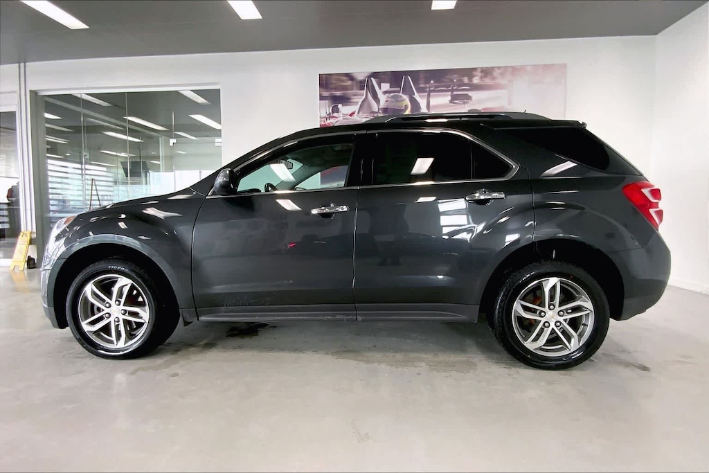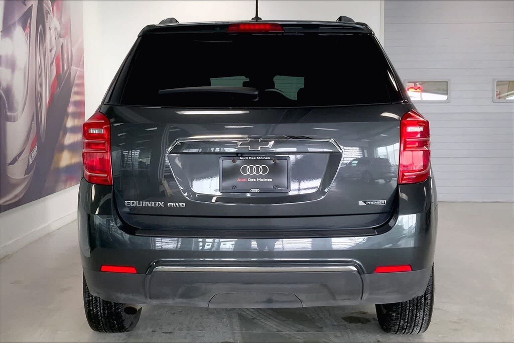 Equinox Premier is nicely equipped with Enhanced Convenience Package (8-Way Power Front Passenger Seat Adjuster, Power Programmable Rear Liftgate, and Universal Home Remote), Preferred Equipment Group 1LZ (6 Speaker Audio System Feature and Bluetoothî For Phone), AWD, 18 Aluminum Wheels, 3.53 Axle Ratio, 4-Wheel Disc Brakes, 6 Speakers, 8-Way Power Driver Seat Adjuster, ABS brakes, Air Conditioning, Alloy wheels, AM/FM radio: SiriusXM, Auto-dimming Rear-View mirror, Automatic temperature control, Brake assist, Bumpers: body-color, Cargo Area Close-Out Panel (LPO), Compass, Delay-off headlights, Deluxe Front Bucket Seats, Driver door bin, Driver vanity mirror, Dual front impact airbags, Dual front side impact airbags, E10 Fuel Capable, Electronic Stability Control, Emergency communication system: OnStar Guidance, Exterior Parking Camera Rear, Four wheel independent suspension, Front anti-roll bar, Front Bucket Seats, Front Center Armrest, Front fog lights, Front reading lights, Fully automatic headlights, Heated door mirrors, Heated Driver & Front Passenger Seats, Heated front seats, Illuminated entry, Low tire pressure warning, Memory seat, Occupant sensing airbag, Outside temperature display, Overhead airbag, Panic alarm, Passenger door bin, Passenger vanity mirror, Perforated Leather-Appointed Seat Trim, Power door mirrors, Power driver seat, Power steering, Power Tilt-Sliding Sunroof w/Express-Open, Power windows, Premium audio system: Chevrolet MyLink, Radio data system, Radio: Chevrolet MyLink Audio System, Rear anti-roll bar, Rear seat center armrest, Rear window defroster, Rear window wiper, Remote keyless entry, Roof rack: rails only, Security system, SiriusXM Satellite Radio, Speed control, Speed-sensing steering, Split folding rear seat, Spoiler, Steering wheel mounted audio controls, Tachometer, Telescoping steering wheel, Tilt steering wheel, Traction control, Trip computer, and Variably intermittent wipers.