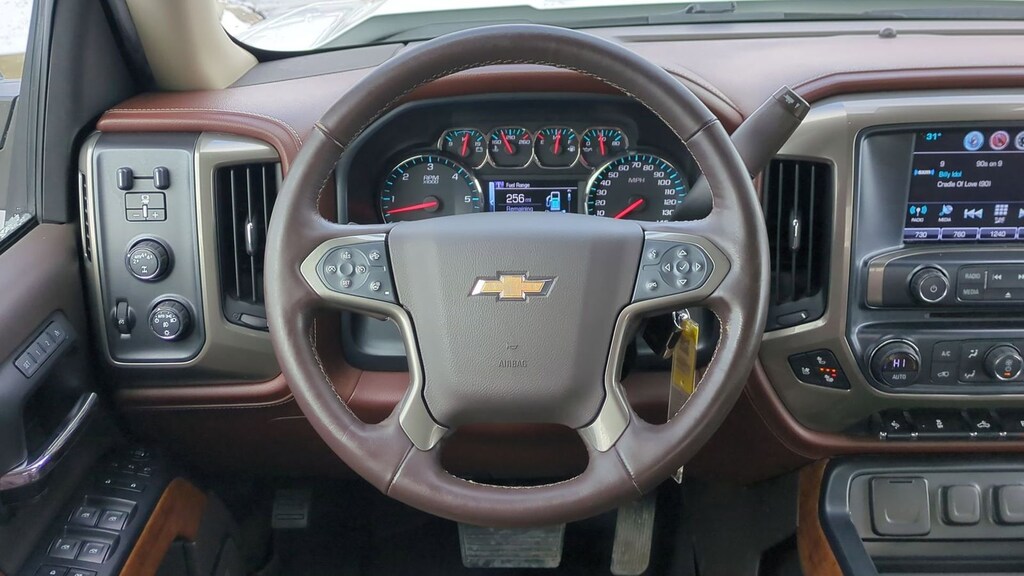 Recent Arrival! 2017 Chevrolet Silverado 1500 High Country Is nicely equipped with Enhanced Driver Alert Package (Forward Collision Alert, IntelliBeam Automatic High Beam On/Off Headlight, Lane Keep Assist, and Low Speed Forward Automatic Braking), Preferred Equipment Group 3LZ (110-Volt AC Power Outlet, 150 Amp Alternator, 4.2" Diagonal Color Display Driver Info Center, Auto-Dimming Inside Rear-View Mirror, Auxiliary External Transmission Oil Cooler, Bluetooth® For Phone, Chrome Bodyside Moldings, Chrome Cap Power-Adjustable Heated Outside Mirrors, Chrome Door Handles, Chrome Grille Surround, Chrome Mirror Caps, Color-Keyed Carpeting w/Rubberized Vinyl Floor Mats, Deep-Tinted Glass, Driver & Front Passenger Illuminated Vanity Mirrors, Dual-Zone Automatic Climate Control, EZ Lift & Lower Tailgate, HD Radio, Heavy-Duty Rear Locking Differential, Leather Wrapped Heated Steering Wheel, Leather Wrapped Steering Wheel w/Cruise Controls, LED Taillamps w/Signature, Manual Tilt/Telescoping Steering Column, OnStar 3 Months Guidance Plan, OnStar w/4G LTE, Power Sliding Rear Window, Power Windows w/Driver Express Up, Rear 60/40 Folding Bench Seat (Folds Up), Rear Vision Camera, Rear Wheelhouse Liners, Remote Keyless Entry, Remote Locking Tailgate, Remote Vehicle Starter System, Single Slot CD/MP3 Player, Spray-On Pickup Box Bed Liner, Steering Wheel Audio Controls, Theft Deterrent System (Unauthorized Entry), Thin Profile LED Fog Lamps, Universal Home Remote, and Electric Rear-Window Defogger), Trailering Package, 8-Speed Automatic with Overdrive, 4WD, Saddle Leather, 3.42 Rear Axle Ratio, 4 Movable Upper Cargo Tie Downs, 4-Wheel Disc Brakes, 6" Rectangular Chromed Tubular Assist Steps, 7 Speakers, ABS brakes, Adjustable pedals, Air Conditioning, Alloy wheels, AM/FM radio: SiriusXM, Auto High-beam Headlights, Auto-dimming door mirrors, Auto-dimming Rear-View mirror, Automatic temperature control, Body Color Rear Bumper w/Cornersteps, Bodyside moldings, Bose Speaker System, Brake assist, Bumpers: body-color, CD player, Chrome wheels, Color-Keyed Carpeted Floor Mats, Compass, Delay-off headlights, Driver door bin, Driver vanity mirror, Dual front impact airbags, Dual front side impact airbags, Electronic Stability Control, Emergency communication system: OnStar Guidance, Exterior Parking Camera Rear, Floor Mounted Console, Front anti-roll bar, Front Body-Color Bumper, Front Bucket Seats, Front Center Armrest w/Storage, Front dual zone A/C, Front fog lights, Front Frame-Mounted Black Recovery Hooks, Front Full Feature Power Reclining Bucket Seats, Front reading lights, Front wheel independent suspension, Fully automatic headlights, Garage door transmitter, Heated & Vented Front Seating, Heated door mirrors, Heated front seats, Heated steering wheel, Heavy Duty Suspension, Illuminated entry, Integrated Trailer Brake Controller, LED Cargo Box Lighting, Low tire pressure warning, Memory seat, Navigation System, Occupant sensing airbag, Outside temperature display, Overhead airbag, Overhead console, Panic alarm, Passenger door bin, Passenger vanity mirror, Perforated Leather Appointed Seat Trim, Polished Exhaust Tip, Power Adjustable Pedals, Power door mirrors, Power driver seat, Power passenger seat, Power steering, Power windows, Premium audio system: Chevrolet MyLink, Radio data system, Radio: AM/FM 8" Diagonal Clr Touch Nav, Rear reading lights, Rear seat center armrest, Rear step bumper, Rear window defroster, Remote keyless entry, Security system, SiriusXM Satellite Radio, Speed control, Speed-sensing steering, Split folding rear seat, Steering wheel mounted audio controls, Tachometer, Telescoping steering wheel, Tilt steering wheel, Traction control, Trip computer, Turn signal indicator mirrors, Ultrasonic Front & Rear Park Assist, Variably intermittent wipers, Ventilated front seats, Voltmeter, Wheels: 20" x 9" Chrome, and Wireless Charging.