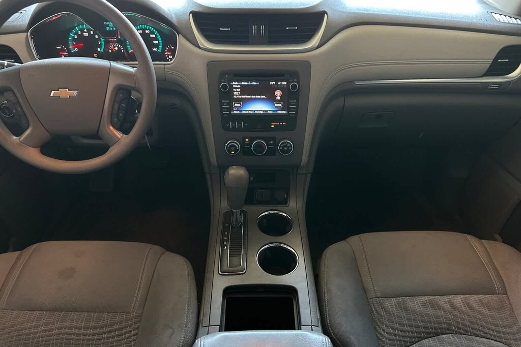 This Traverse LS is finished in the Summit White exterior paint and Dark Titanium/Light Titanium Cloth interior.