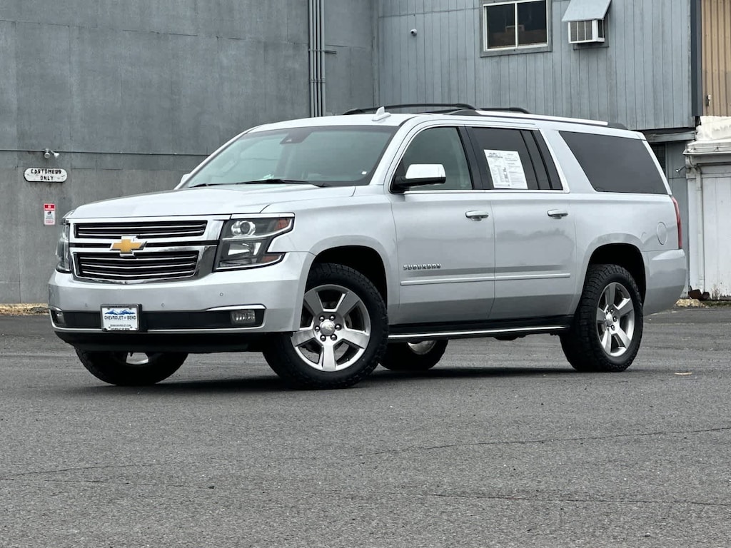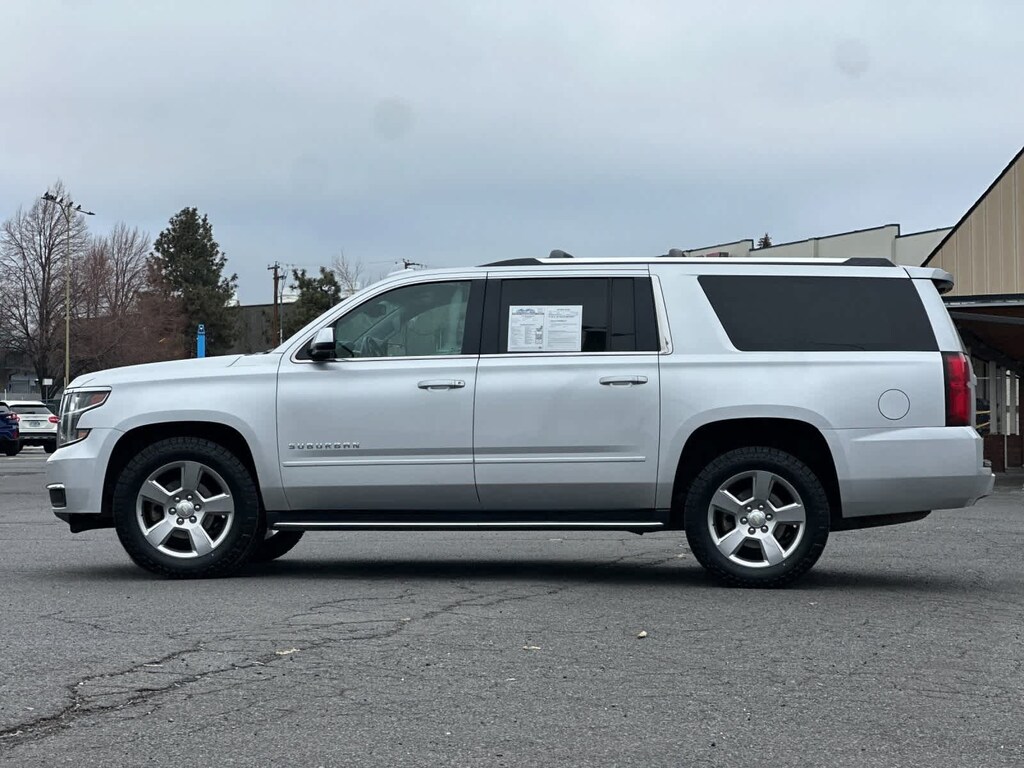 Silver Ice Metallic 2018 Chevrolet Suburban Premier 4WD 6-Speed Automatic Electronic with Overdrive EcoTec3 5.3L V8 Flex Fuel 12-Volt Auxiliary Power Outlet (5), 1st & 2nd Row Color-Keyed Carpeted Floor Mats, 3rd Row 60/40 Power Fold Split-Bench, 4-Wheel Antilock Disc Brakes, 6-Way Power Front Passenger Seat Adjuster, Auto-Dimming Inside Rear-View Mirror, Black Assist Steps, Color-Keyed Carpeting Floor Covering, Driver Inboard & Front Passenger Airbags, Electronic Cruise Control w/Set & Resume Speed, Enhanced Driver Alert Package, Floor Console w/Storage Area, Fog Lamps, Forward Collision Alert, Front & Rear Park Assist, Hands Free Power Liftgate, HD Radio, Heated 2nd Row Outboard Seats, Heated Leather Wrapped Steering Wheel, Intellibeam Headlamps w/Automatic High Beam On/Off, Lane Change Alert w/Side Blind Zone Alert, Lane Keep Assist w/Lane Departure Warning, License Plate Front Mounting Package, Low Speed Forward Automatic Braking, Magnetic Ride Control Suspension Package, Memory Settings, Navigation System, OnStar Basic Plan For 5 Years, Passive Entry System, Power Folding & Adjustable Heated Outside Mirrors, Power Release 2nd Row Bucket Seats, Power Tilt & Telescoping Steering Column, Power-Adjustable Accelerator & Brake Pedals, Preferred Equipment Group 1LZ, Push Button Keyless Start, Rear Cross-Traffic Alert, Remote Vehicle Start, Roof-Mounted Luggage Rack Side Rails, Safety Alert Seat, SiriusXM Satellite Radio, Spoiler, Universal Home Remote, Wireless Charging.