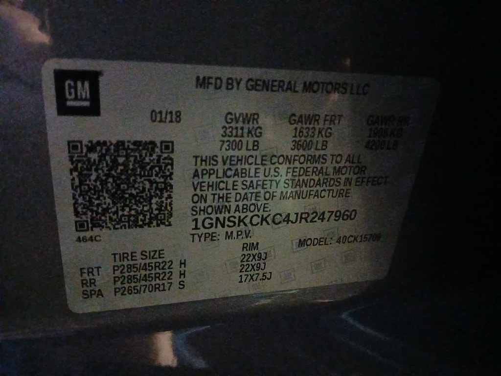 4WD, Jet Black Leather, 10 Speakers, 1st & 2nd Row Color-Keyed Carpeted Floor Mats, 2nd Row Pwr Release 60/40 Split Folding Bench Seat, 3rd Row 60/40 Power Fold Split-Bench, 3rd row seats: split-bench, 4-Wheel Antilock Disc Brakes w/Brake Assist, 4-Wheel Disc Brakes, 5 12-Volt Auxiliary Power Outlets, ABS brakes, Adaptive Cruise Control, Adaptive suspension, Adjustable pedals, Air Conditioning, Alloy wheels, AM/FM radio: SiriusXM, Apple CarPlay/Android Auto, Auto High-beam Headlights, Auto-dimming door mirrors, Auto-Dimming Inside Rear-View Mirror, Auto-dimming Rear-View mirror, Automatic temperature control, Black Assist Steps w/Chrome Accent Strip, Black Roof Rack Cross Rails, Bluetoothî For Phone, Body Security Content Theft Protection Package, Bodyside moldings, Bose Centerpoint Premium 10-Speaker Surround Sound, Brake assist, Bumpers: body-color, Cargo Net, CD player, Color-Keyed Carpeting Floor Covering, Compass, Delay-off headlights, Driver door bin, Driver Inboard & Front Passenger Airbags, Driver vanity mirror, Dual front impact airbags, Dual front side impact airbags, Electronic Cruise Control w/Set & Resume Speed, Electronic Stability Control, Emergency communication system: OnStar Guidance, Enhanced Driver Alert Package (Y86), Enhanced Driver Information Center, Exterior Parking Camera Rear, Floor Console, Fog Lamps, Forward Automatic Braking, Forward Collision Alert, Front & Rear Black Bowtie Emblems (LPO), Front & Rear Park Assist, Front anti-roll bar, Front Bucket Seats, Front Center Armrest, Front dual zone A/C, Front fog lights, Front Heated Reclining Bucket Seats, Front Passenger 6-Way Power Seat Adjuster, Front reading lights, Front wheel independent suspension, Fully automatic headlights, Garage door transmitter, Hands Free Power Liftgate, HD Radio, Head-Up Display, Heated & Ventilated Driver & Front Passenger Seats, Heated 2nd Row Seats, Heated door mirrors, Heated front seats, Heated Leather Wrapped Steering Wheel, Heated rear seats, Heated steering wheel, High-Intensity Discharge Headlights, Illuminated entry, Integrated Trailer Brake Controller, IntelliBeam Headlamps, Lane Change Alert w/Side Blind Zone Alert, Lane Keep Assist w/Lane Departure Warning, License Plate Front Mounting Package, Low Speed Forward Automatic Braking, Low tire pressure warning, Magnetic Ride Control Suspension Package, Max Trailering Package, Memory seat, Memory Settings, Molded Splash Guards, Navigation System, Occupant sensing airbag, OnStar Basic Plan For 5 Years, Outside temperature display, Overhead airbag, Overhead console, Panic alarm, Passenger door bin, Passenger vanity mirror, Passive Entry System, Pedal memory, Perforated Leather-Appointed Seat Trim, Polished Exhaust Tip, Power door mirrors, Power driver seat, Power Liftgate, Power passenger seat, Power Release 2nd Row Bucket Seats, Power steering, Power Sunroof, Power Tilt & Telescopic Steering Column, Power windows, Power-Adjustable Accelerator & Brake Pedals, Power-Folding Heated Outside Mirrors, Preferred Equipment Group 1LZ, Premium audio system: Chevrolet MyLink, Push Button Keyless Start, Radio: Chevrolet MyLink w/Nav/AM/FM Stereo, Rain sensing wipers, Rear air conditioning, Rear anti-roll bar, Rear Cross-Traffic Alert, Rear reading lights, Rear Seat Blu-Ray/DVD Enterta