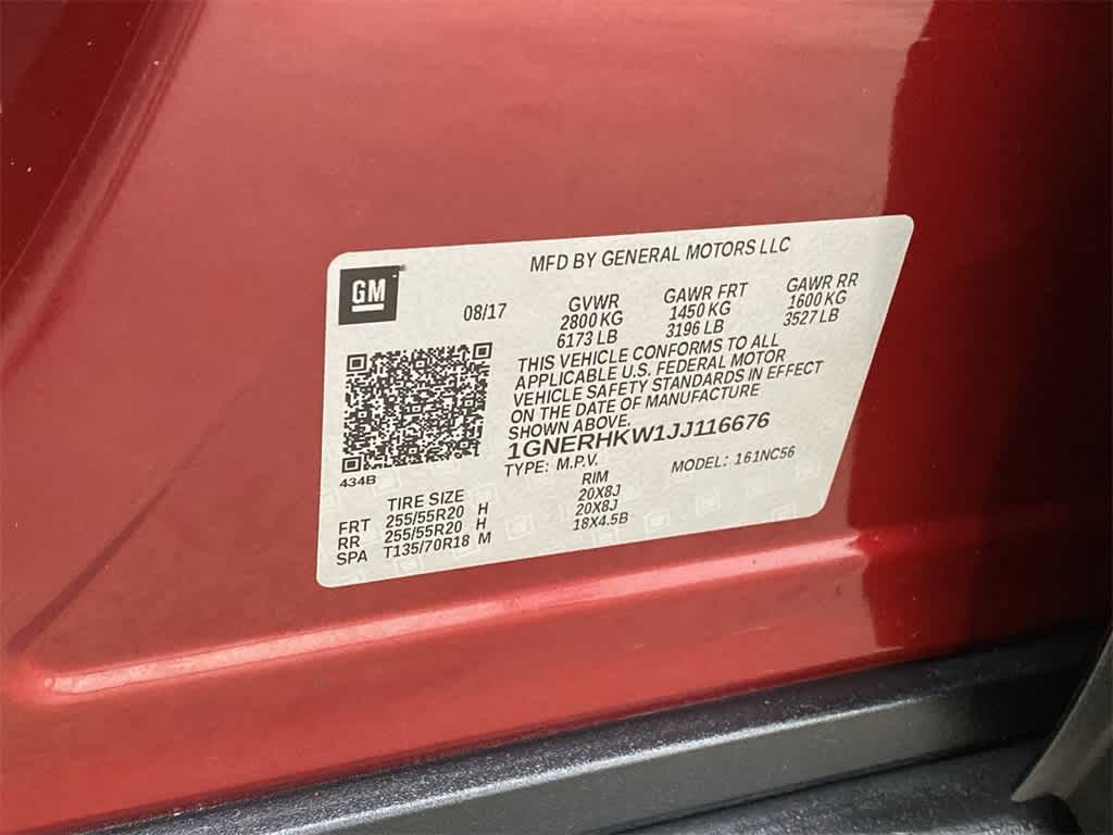 Third Row Seat, Power Liftgate, Rear Air, Heated Driver Seat, Back-Up Camera, Premium Sound System, Satellite Radio, Onboard Communications System, Aluminum Wheels, Remote Engine Start, Dual Zone A/C, Blind Spot Monitor, Cross-Traffic Alert, WiFi Hotspot, Heated Seats. Chevrolet LT Leather with Cajun Red Tintcoat exterior and Jet Black interior features a V6 Cylinder Engine with 310 HP at 6800 RPM*.