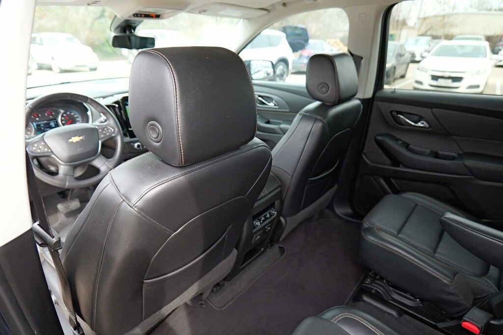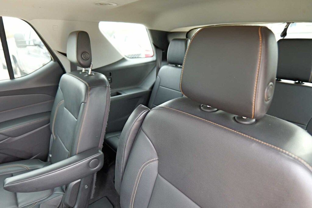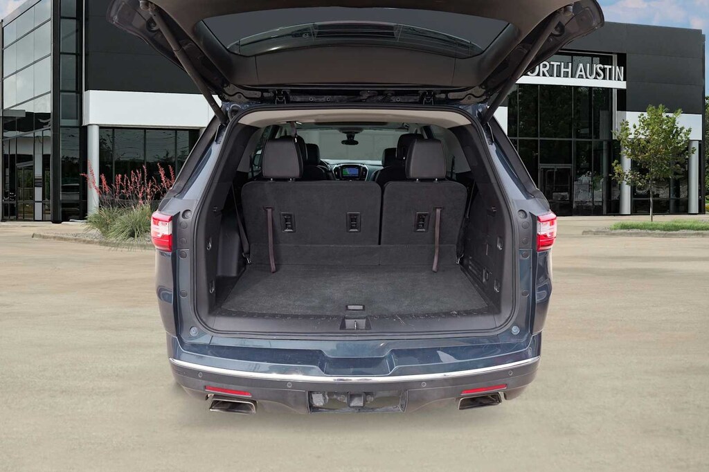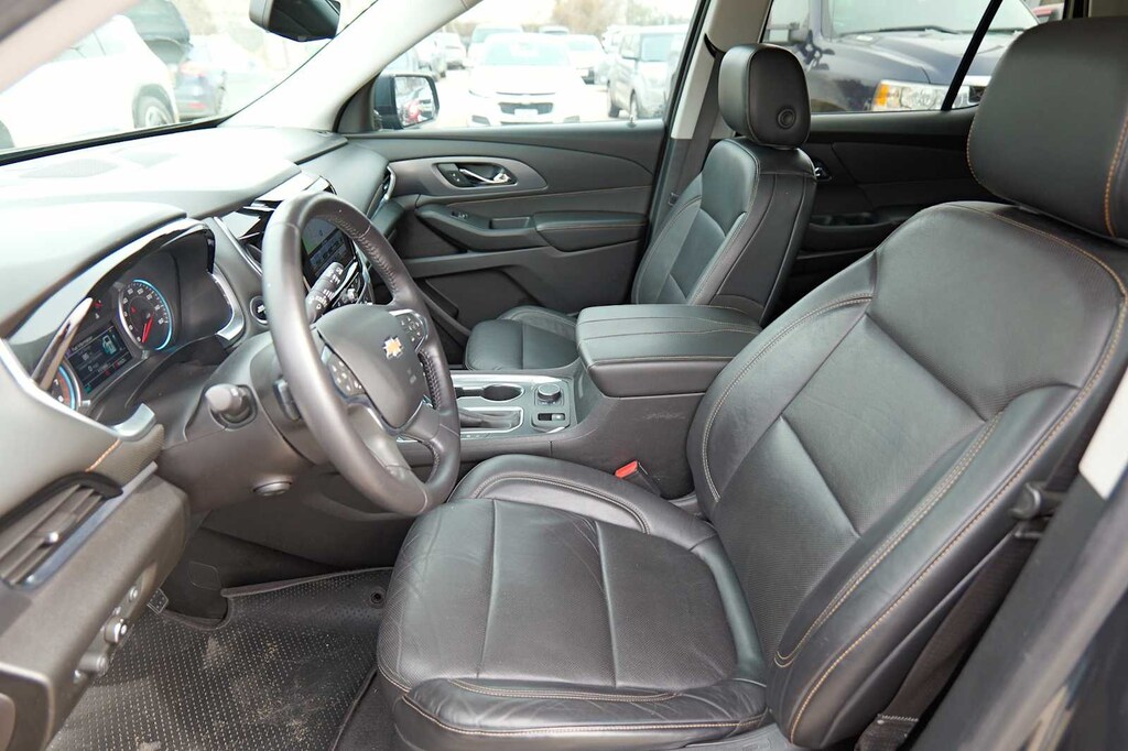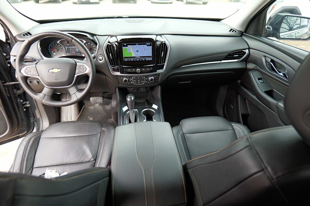 Recent Arrival! Traverse Premier, Graphite Metallic, Jet Black Leather, 10 Speakers, 3.49 Axle Ratio, 3rd row seats: split-bench, 4-Wheel Disc Brakes, 7-Passenger Seating (2-2-3 Seating Configuration), ABS brakes, Air Conditioning, Alloy wheels, AM/FM radio: SiriusXM, Apple CarPlay/Android Auto, Auto-dimming door mirrors, Auto-dimming Rear-View mirror, Automatic temperature control, Bose Premium 10-Speaker Audio System Feature, Brake assist, Bumpers: body-color, Compass, Delay-off headlights, Driver Confidence II Package, Driver door bin, Driver vanity mirror, Dual front impact airbags, Dual front side impact airbags, Dual SkyScape 2-Panel Power Sunroof, Electronic Stability Control, Emergency communication system: OnStar Guidance, Following Distance Indicator, Forward Collision Alert, Four wheel independent suspension, Front anti-roll bar, Front Bucket Seats, Front Center Armrest, Front dual zone A/C, Front fog lights, Front Pedestrian Braking, Front reading lights, Fully automatic headlights, Garage door transmitter, Heated door mirrors, Heated Front Seats, Heated Rear Seats, Heated Steering Wheel, Heavy-Duty Cooling System, Illuminated entry, IntelliBeam Auto High Beam Control Headlamps, Keyless Entry Keypad (LPO), Lane Keep Assist w/Lane Departure Warning, Low Speed Forward Automatic Braking, Low tire pressure warning, Memory seat, Navigation System, Occupant sensing airbag, Outside temperature display, Overhead airbag, Overhead console, Panic alarm, Passenger door bin, Passenger vanity mirror, Perforated Leather-Appointed Seat Trim, Power door mirrors, Power driver seat, Power Liftgate, Power Passenger Seat, Power steering, Power windows, Preferred Equipment Group 1LZ, Premium audio system: Chevrolet MyLink, Radio data system, Radio: Chevrolet MyLink AM/FM Stereo w/Navigation, Rear air conditioning, Rear anti-roll bar, Rear reading lights, Rear window defroster, Rear window wiper, Remote keyless entry, Roof rack: rails only, Security system, SiriusXM Satellite Radio, Speed control, Speed-sensing steering, Spoiler, Steering wheel memory, Steering wheel mounted audio controls, Tachometer, Telescoping steering wheel, Tilt steering wheel, Traction control, Trailering Equipment, Trip computer, Turn signal indicator mirrors, Variably intermittent wipers, Ventilated Front Seats, Voltmeter, Wheels: 20 Argent Metallic Machine Faced Aluminum, Traverse Premier, Graphite Metallic, Jet Black Leather.