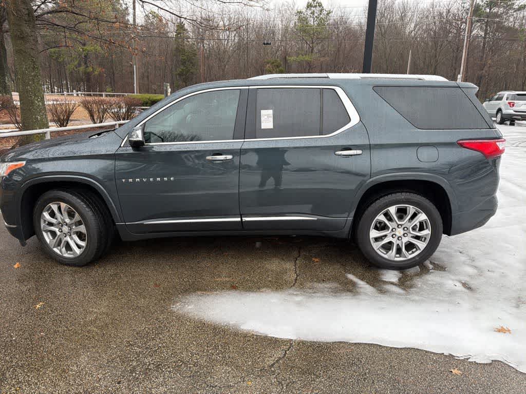 This Traverse Premier is nicely equipped with Cargo Package (LPO) (Integrated Cargo Liner (LPO), Retractable Cargo Shade, and Vertical Cargo Net (LPO)), Chrome Essentials Package (LPO) (Chrome Mirror Caps and Stainless Steel Door Sill Plates (LPO)), Driver Confidence II Package (Following Distance Indicator, Forward Collision Alert, Front Pedestrian Braking, IntelliBeam Auto High Beam Control Headlamps, Lane Keep Assist w/Lane Departure Warning, and Low Speed Forward Automatic Braking), Preferred Equipment Group 1LZ, Trailering Equipment (Heavy-Duty Cooling System), 10 Speakers, 2nd Row Protective Seat Cover (LPO), 3.49 Axle Ratio, 3rd row seats: split-bench, 4-Wheel Disc Brakes, 7-Passenger Seating (2-2-3 Seating Configuration), ABS brakes, Air Conditioning, Alloy wheels, AM/FM radio: SiriusXM, Apple CarPlay/Android Auto, Auto-dimming door mirrors, Auto-dimming Rear-View mirror, Automatic temperature control, Bose Premium 10-Speaker Audio System Feature, Brake assist, Bumpers: body-color, Compass, Delay-off headlights, Driver door bin, Driver vanity mirror, Dual front impact airbags, Dual front side impact airbags, Dual SkyScape 2-Panel Power Sunroof, Electronic Stability Control, Emergency communication system: OnStar Guidance, Four wheel independent suspension, Front anti-roll bar, Front Bucket Seats, Front Center Armrest, Front dual zone A/C, Front fog lights, Front reading lights, Fully automatic headlights, Garage door transmitter, Heated door mirrors, Heated front seats, Heated rear seats, Heated steering wheel, Illuminated entry, Low tire pressure warning, Memory seat, Navigation System, Occupant sensing airbag, Outside temperature display, Overhead airbag, Overhead console, Panic alarm, Passenger door bin, Passenger vanity mirror, Perforated Leather-Appointed Seat Trim, Power door mirrors, Power driver seat, Power Liftgate, Power passenger seat, Power steering, Power windows, Premium audio system: Chevrolet MyLink, Radio data system, Radio: Chevrolet MyLink AM/FM Stereo w/Navigation, Rear air conditioning, Rear anti-roll bar, Rear reading lights, Rear window defroster, Rear window wiper, Remote keyless entry, Roof rack: rails only, Security system, SiriusXM Satellite Radio, Speed control, Speed-sensing steering, Spoiler, Steering wheel memory, Steering wheel mounted audio controls, Tachometer, Telescoping steering wheel, Tilt steering wheel, Traction control, Trip computer, Turn signal indicator mirrors, Variably intermittent wipers, Ventilated front seats, Voltmeter, and Wheels: 20 Argent Metallic Machine Faced Aluminum. Price does not include licensing costs, registration fees, taxes and dealer doc fee of $899.50 which are to be paid by the consumer.