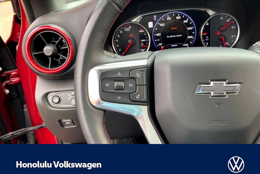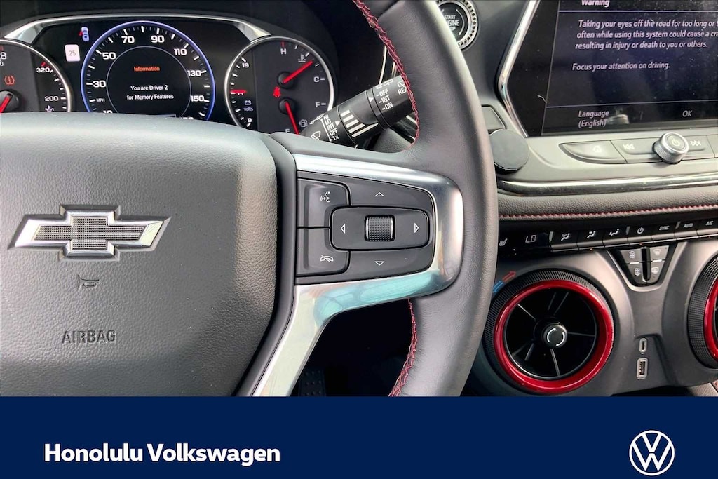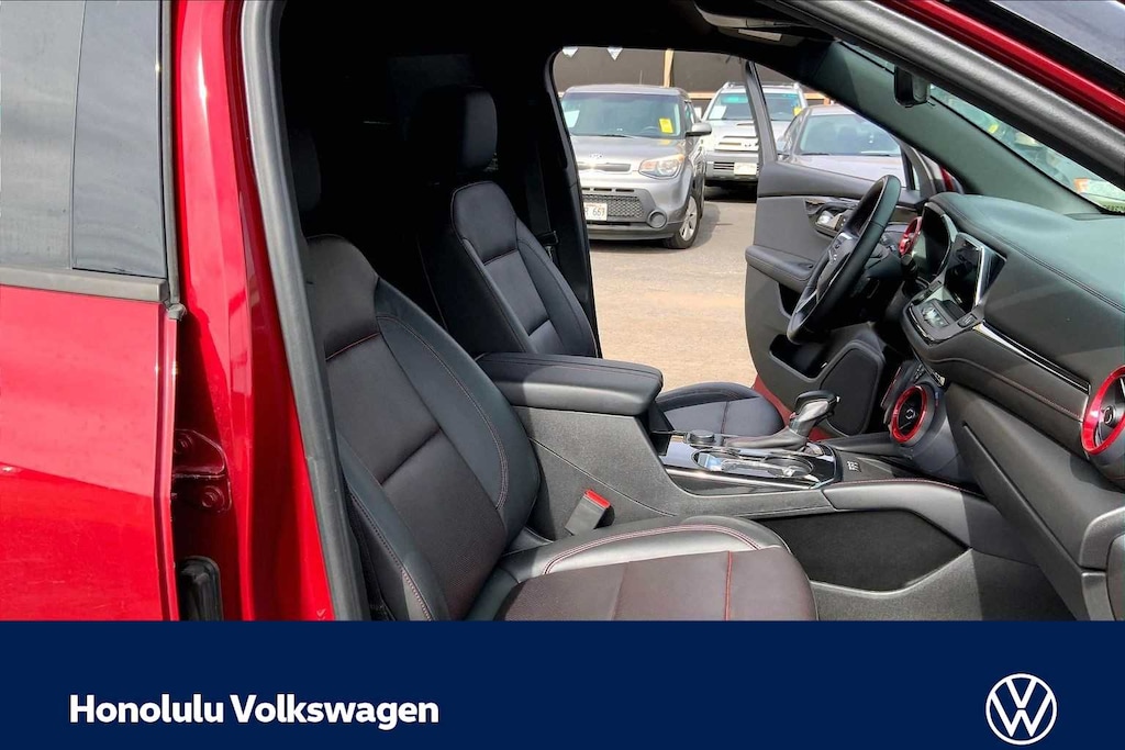 ENHANCED CONVENIENCE AND DRIVER CONFIDENCE II PACKAGE includes (IOT) Chevrolet Infotainment 3 Premium system with connected Navigation and 8 diagonal HD color touchscreen, (UQA) Bose premium 8-speaker system, (AAB) memory settings, (K4C) Wireless Charging, (KA6) rear outboard heated seats, (KU9) driver and front passenger ventilated seats, (N38) power tilt and telescoping steering column, (UV2) HD Surround Vision, (DRZ) Rear Camera Mirror, (KSG) Adaptive Cruise Control - Advanced, (UGN) Forward Automatic Braking, (UKJ) Front Pedestrian Braking, (UHX) Lane Keep Assist with Lane Departure Warning, (UE4) Following Distance Indicator, (UEU) Forward Collision Alert, (HS1) Safety Alert Seat and (TQ5) IntelliBeam headlamps, AUDIO SYSTEM, CHEVROLET INFOTAINMENT 3 PREMIUM SYSTEM with connected Navigation, 8 diagonal HD color touchscreen, AM/FM stereo, Bluetooth® audio streaming for 2 active devices, Apple CarPlay® and Android Auto® capable, enhanced voice recognition, additional memory for in-vehicle apps, cloud connected personalization for select infotainment and vehicle settings. Subscription required for enhanced and connected services after trial period. ENGINE, 3.6L V6, SIDI, DOHC WITH VARIABLE VALVE TIMING (VVT) and Active Fuel Management with Stop/Start (308 hp [230 kW] @ 6600 rpm, 270 lb-ft of torque [365 N-m] @ 5000 rpm) (STD), TRANSMISSION, 9-SPEED AUTOMATIC, ELECTRONICALLY-CONTROLLED with overdrive, includes Driver Shift Control (STD). Chevrolet RS with Cajun Red Tintcoat exterior and Jet Black interior features a V6 Cylinder Engine with 308 HP at 6600 RPM*.