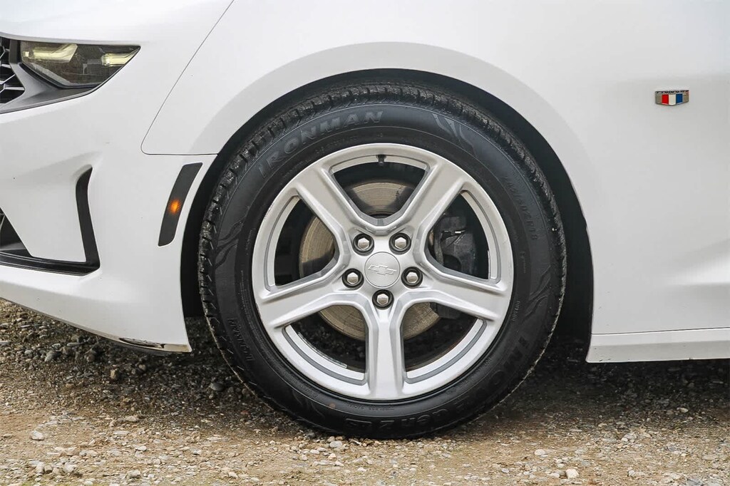 This 2019 Chevrolet Camaro 1LT is finished in the Summit White exterior paint and Jet Black Cloth interior.