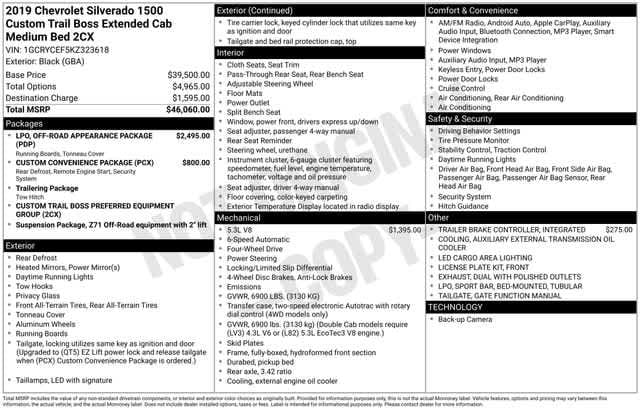 4x4, Rear Air, Back-Up Camera, Trailer Hitch, Aluminum Wheels. Chevrolet Custom Trail Boss with BLACK exterior and JET BLACK interior features a 8 Cylinder Engine with 285 HP at 5300 RPM*.