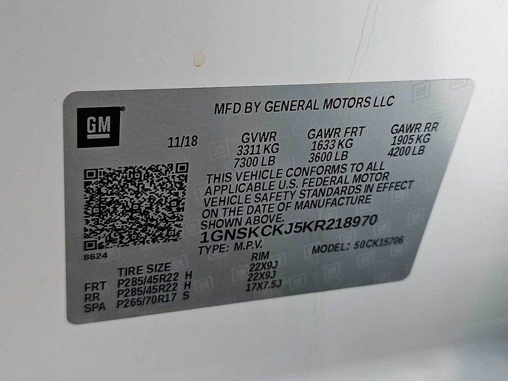 10 Speakers, 170 Amp Alternator, 1st & 2nd Row Color-Keyed Carpeted Floor Mats, 3rd Row 60/40 Power Fold Split-Bench, 3rd row seats: split-bench, 4-Wheel Antilock Disc Brakes w/Brake Assist, 4-Wheel Disc Brakes, 5 12-Volt Auxiliary Power Outlets, ABS brakes, Adaptive suspension, Adjustable pedals, Air Conditioning, Alloy wheels, AM/FM radio: SiriusXM, Apple CarPlay/Android Auto, Auto High-beam Headlights, Auto-dimming door mirrors, Auto-Dimming Inside Rear-View Mirror, Auto-dimming Rear-View mirror, Automatic temperature control, Black Assist Steps w/Chrome Accent Strip, Black Beltline Moldings, Black Mirror Caps, Black Roof Rack Cross Rails, Black Roof Rails, Bluetoothî For Phone, Body-Color Door Handles & Headlamp Accents, Bodyside moldings, Bose Centerpoint Premium 10-Speaker Surround Sound, Brake assist, Bumpers: body-color, Cargo Net, CD player, Color-Keyed Carpeting Floor Covering, Compass, Delay-off headlights, Driver door bin, Driver Inboard & Front Passenger Airbags, Driver vanity mirror, Dual front impact airbags, Dual front side impact airbags, Electronic Cruise Control w/Set & Resume Speed, Electronic Stability Control, Emergency communication system: OnStar and Chevrolet connected services capable, Enhanced Driver Alert Package (Y86), Enhanced Driver Information Center, Exterior Parking Camera Rear, Floor Console, Fog Lamps, Forward Collision Alert, Front & Rear Black Bowties, Front & Rear Park Assist, Front anti-roll bar, Front Bucket Seats, Front Center Armrest, Front dual zone A/C, Front fog lights, Front Heated Reclining Bucket Seats, Front Passenger 6-Way Power Seat Adjuster, Front reading lights, Front wheel independent suspension, Fully automatic headlights, Garage door transmitter, Hands Free Power Liftgate, HD Radio, Head-Up Display, Heated & Ventilated Driver & Front Passenger Seats, Heated 2nd Row Seats, Heated door mirrors, Heated front seats, Heated Leather Wrapped Steering Wheel, Heated rear seats, Heated steering wheel, High-Intensity Discharge Headlights, Illuminated entry, Integrated Trailer Brake Controller, IntelliBeam Headlamps, Lane Change Alert w/Side Blind Zone Alert, Lane Keep Assist w/Lane Departure Warning, License Plate Front Mounting Package, Low Speed Forward Automatic Braking, Low tire pressure warning, Magnetic Ride Control Suspension Package, Memory seat, Memory Settings, Navigation System, Occupant sensing airbag, Outside temperature display, Overhead airbag, Overhead console, Panic alarm, Passenger door bin, Passenger vanity mirror, Passive Entry System, Pedal memory, Perforated Leather-Appointed Seat Trim, Power door mirrors, Power driver seat, Power Liftgate, Power passenger seat, Power Release 2nd Row Bucket Seats, Power steering, Power Sunroof, Power Tilt & Telescopic Steering Column, Power windows, Power-Adjustable Accelerator & Brake Pedals, Power-Folding Heated Outside Mirrors, Preferred Equipment Group 1LZ, Premium audio system: Chevrolet MyLink, Push Button Keyless Start, Radio: Chevrolet Infotainment AM/FM Stereo w/Nav, Rain sensing wipers, Rear air conditioning, Rear anti-roll bar, Rear Cross Traffic Alert, Rear reading lights, Rear Seat Blu-Ray/DVD Entertainment System, Rear window defroster, Rear window wiper, Remote Keyless Entry, Remote keyless entry, Remote Vehicle Start, Roof rack: rails only, Roof-Mounted Luggage Rack Side Rails, RST 6.2L Performance Edition, RST Edition, Security system, Set of 4 Wheel Locks (LPO), Single-Slot CD/MP3 Player, SiriusXM NavTraffic, SiriusXM Radio, Speed control, Speed-sensing steering, Split folding rear seat, Spoiler, Steering wheel memory, Steering wheel mounted audio controls, Sun, Entertainment & Destinations Package, Tachometer, Telescoping steering wheel, Tilt steering wheel, Traction control, Trip computer, Turn signal indicator mirrors, Unique Gloss Black Sport Grille, Unique RST Emblem, Universal Home R