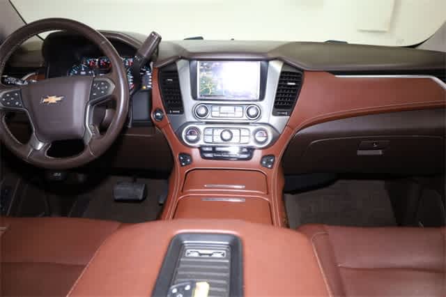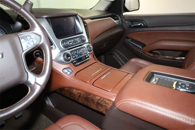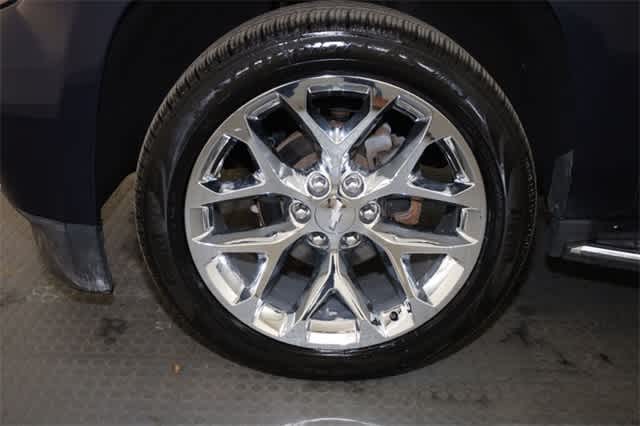 WHEELS, 22 X 9 (55.9 CM X 22.9 CM) 6-SPOKE CHROME MULTI-FEATURED DESIGN, SUNROOF, POWER, TILT-SLIDING with express-open and close and wind deflector, LPO, ALL-WEATHER FLOOR LINER, 1ST AND 2ND ROWS bright finish badge (dealer-installed), SEATS, FRONT BUCKET WITH PERFORATED LEATHER-APPOINTED HEATED AND VENTILATED SEAT CUSHIONS 12-way power driver and passenger seat includes 6-way power cushions, driver seat 2-position memory, 4-way power lumbar control and power recline (STD), AUDIO SYSTEM, 8 DIAGONAL COLOR TOUCH-SCREEN NAVIGATION WITH CHEVROLET INFOTAINMENT AM/FM stereo with seek-and-scan and digital clock, includes Bluetooth® streaming audio for music and select phones; voice-activated technology for radio and phone; and Shop with the ability to browse, select and install apps to your vehicle. You can customize your content with audio, weather and more; featuring Apple CarPlay® and Android Auto® capability for compatible phone; 5 USB ports and 1 auxiliary jack (STD), ENGINE, 5.3L ECOTEC3 V8 WITH ACTIVE FUEL MANAGEMENT, DIRECT INJECTION AND VARIABLE VALVE TIMING includes aluminum block construction (355 hp [265 kW] @ 5600 rpm, 383 lb-ft of torque [518 N-m] @ 4100 rpm) (STD), TRANSMISSION, 6-SPEED AUTOMATIC, ELECTRONICALLY CONTROLLED with overdrive and tow/haul mode (STD).