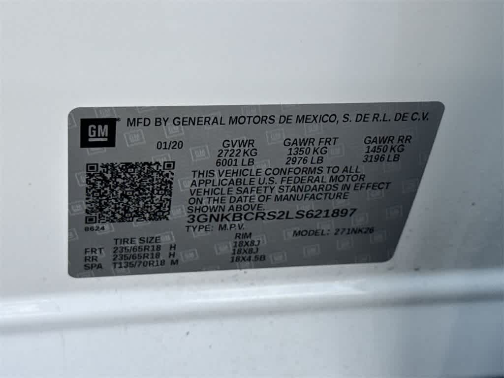 CONVENIENCE AND DRIVER CONFIDENCE PACKAGE includes (BTV) Remote Start, (KA1) driver and front passenger heated seats, (UG1) Universal Home Remote, (TB5) power programmable liftgate, (V59) roof-mounted side rails, (UKC) Lane Change Alert with Side Blind Zone Alert, (UFG) Rear Cross Traffic Alert, (UD7) Rear Park Assist, (DD8) auto-dimming inside rearview mirror and (DM8) auto-dimming outside heated power-adjustable manual-folding body-color mirrors with turn signal indicators, ENGINE, 3.6L V6, SIDI, DOHC WITH VARIABLE VALVE TIMING (VVT) and Active Fuel Management with Stop/Start (308 hp [230 kW] @ 6600 rpm, 270 lb-ft of torque [365 N-m] @ 5000 rpm), LPO, FLOOR LINER PACKAGE includes (RIA) front and second row all-weather floor liners, LPO (Also includes (CAV) integrated cargo liner, LPO. AUDIO SYSTEM, CHEVROLET INFOTAINMENT 3 SYSTEM 8 diagonal color touchscreen, AM/FM stereo. Additional features for compatible phones include: Bluetooth® audio streaming for 2 active devices, voice command pass-through to phone, Apple CarPlay® and Android Auto® capable. (STD), TRANSMISSION, 9-SPEED AUTOMATIC, ELECTRONICALLY-CONTROLLED with overdrive, includes Driver Shift Control.
