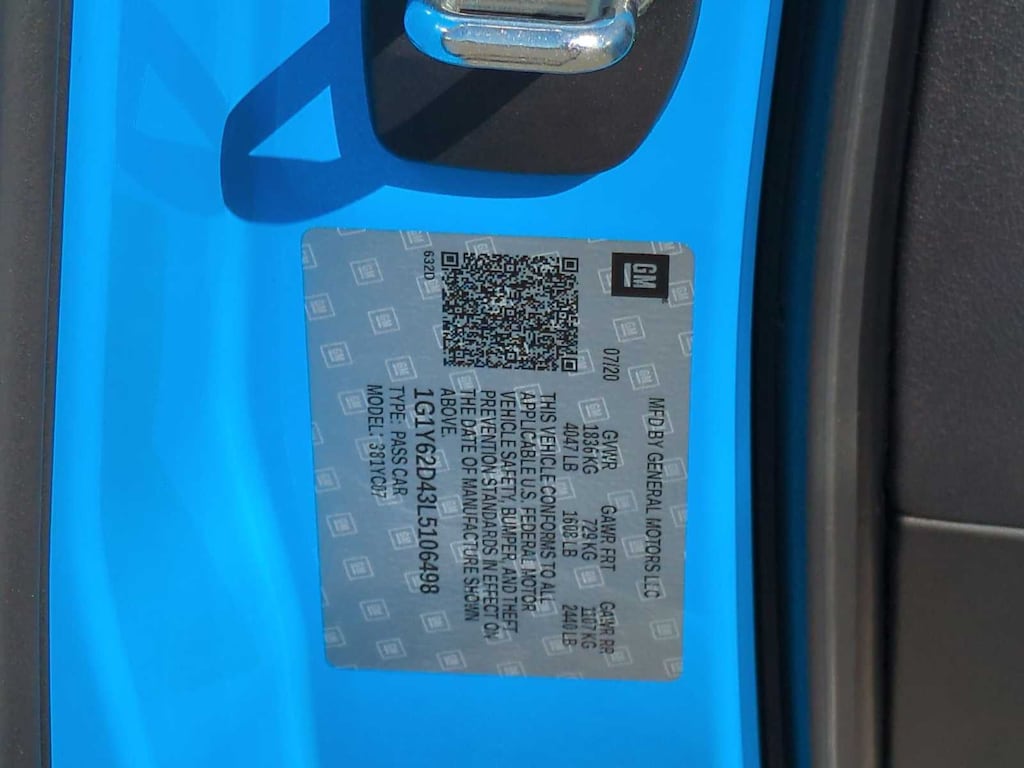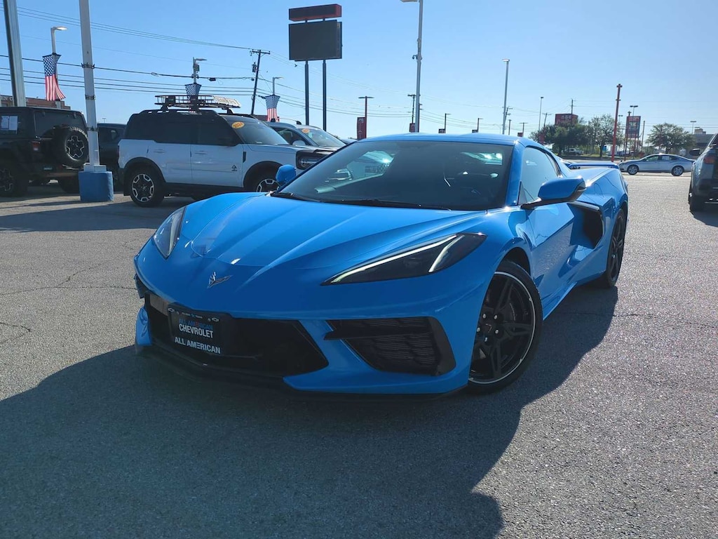 Z51 PERFORMANCE PACKAGE includes (J55) Z51 performance brakes, (FE3) Z51 performance suspension, (NPP) performance exhaust, (GM7) performance rear axle ratio, (G96) Electronic Limited Slip Differential (eLSD), (T0A) Z51 rear spoiler, front splitter, (XFQ) 245/35ZR19 front and 305/30ZR20 rear, blackwall, high performance tires and (V08) heavy-duty cooling system, WHEELS, 19" X 8.5" (48.3 CM X 21.6 CM) FRONT AND 20" X 11" (50.8 CM X 27.9 CM) REAR 5-OPEN-SPOKE CARBON FLASH-PAINTED ALUMINUM WITH MACHINED EDGE, AUDIO SYSTEM, CHEVROLET INFOTAINMENT 3 PLUS SYSTEM 8" diagonal HD color touchscreen, AM/FM stereo, Bluetooth® audio streaming for 2 active devices, Apple CarPlay® and Android Auto® capable, voice recognition, in-vehicle apps, cloud connected personalization for select infotainment and vehicle settings. (STD), ENGINE, 6.2L V8 DI, HIGH-OUTPUT Variable Valve Timing (VVT), Active Fuel Management (AFM) (490 hp [365.4 kW] @ 6450 rpm, 465 lb-ft of torque [627.8 N-m] @ 5150 rpm) (STD), TRANSMISSION, 8-SPEED DUAL CLUTCH, INCLUDES MANUAL AND AUTO MODES (STD). Chevrolet 1LT with RAPID BLUE exterior and JET BLACK interior features a 8 Cylinder Engine with 490 HP at 6450 RPM*.