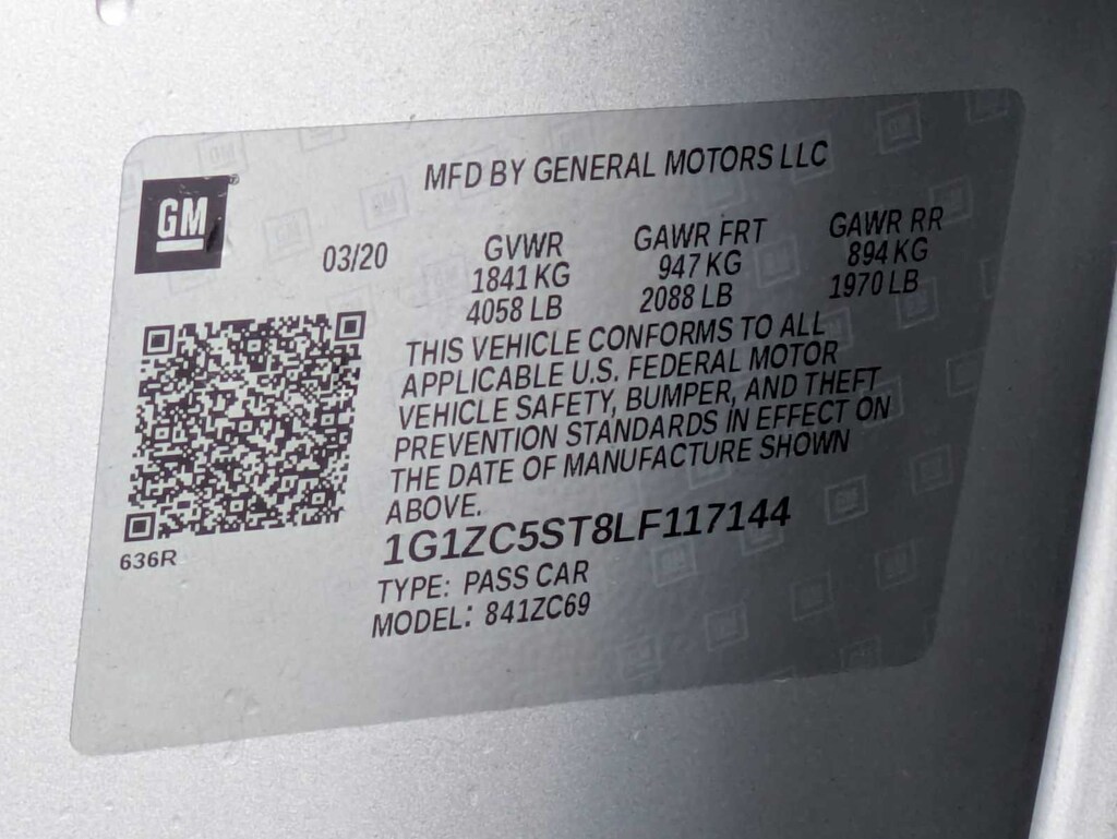 SEAT ADJUSTER, 8-WAY POWER DRIVER (Includes (AL9) power driver lumbar control seat adjuster.), AUDIO SYSTEM, CHEVROLET INFOTAINMENT 3 SYSTEM, 8 DIAGONAL COLOR TOUCHSCREEN, AM/FM STEREO. Additional features for compatible phones include: Bluetooth® audio streaming for 2 active devices, voice command pass-through to phone, Apple CarPlay® and Android Auto® capable. (STD), ENGINE, 1.5L TURBO DOHC 4-CYLINDER DI with Variable Valve Timing (VVT) (160 hp [119.3 kW] @ 5700 rpm, 184 lb-ft torque [248.4 N-m] @ 2500-3000 rpm) (STD), TRANSMISSION, CONTINUOUSLY VARIABLE (CVT) (STD). Chevrolet LS with Silver Ice Metallic exterior and Dark Atmosphere/ Medium Ash Gray interior features a 4 Cylinder Engine with 160 HP at 5700 RPM*.