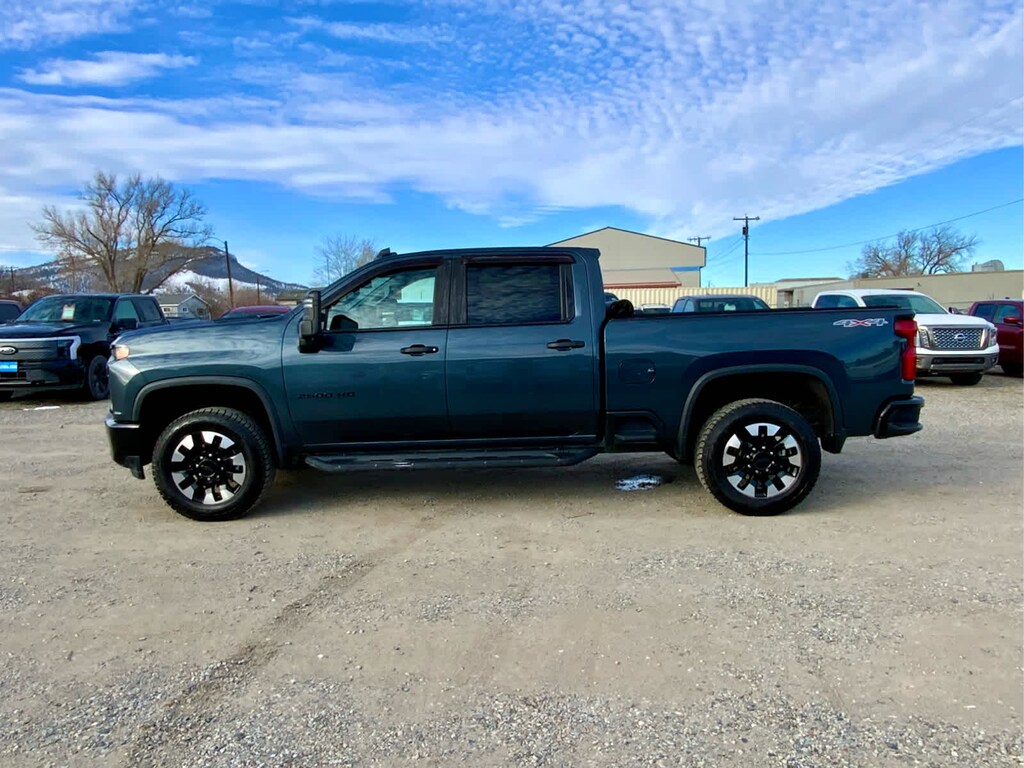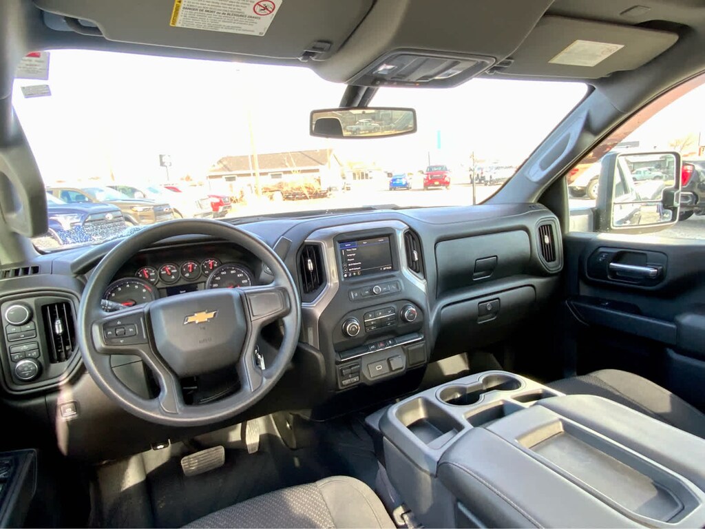 includes (BTV) Remote Start, (C49) rear-window defogger, (UF2) bed LED cargo area lighting, (QT5) EZ Lift power lock and release tailgate and (JL1) Trailer brake controller, Black with Chevrolet logo (does not include spray-on liner on tailgate due to Black composite inner panel), includes (U2K) SiriusXM Radio and (UE1) OnStar, 1st and 2nd row on Crew Cab and Double Cab, (includes Chevrolet Bowtie logo on front mats), 7" diagonal color touchscreen, AM/FM stereo. Additional features for compatible phones include: Bluetooth® audio streaming for 2 active devices, voice command pass-through to phone, Apple CarPlay® and Android Auto® capable. (STD), with Direct Injection and Variable Valve Timing, gasoline, (401 hp [299 kW] @ 5200 rpm, 464 lb-ft of torque [629 N-m] @ 4000 rpm) (STD), (STD). Chevrolet Custom with Shadow Gray Metallic exterior and Jet Black interior features a 8 Cylinder Engine with 401 HP at 5200 RPM*.