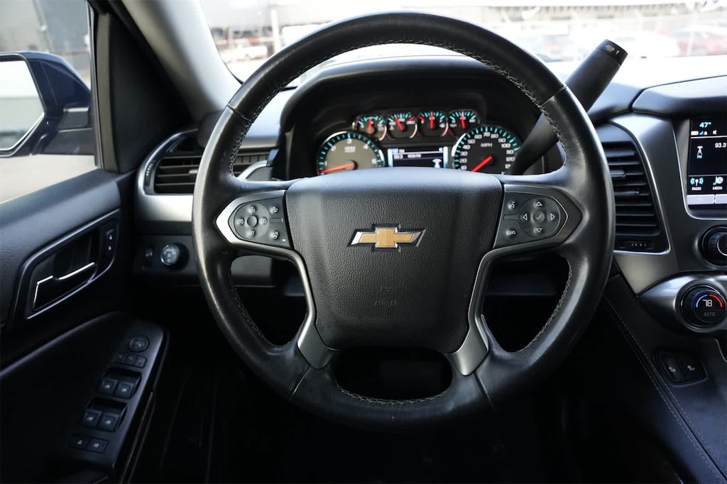 12-Volt Auxiliary Power Outlet (5), 18 x 8.5 High-Polished Aluminum Finish Wheels, 1st & 2nd Row Color-Keyed Carpeted Floor Mats, 2nd Row 60/40 Split-Folding Manual Bench, 2nd Row Pwr Release 60/40 Split Folding Bench Seat, 3.08 Rear Axle Ratio, 3rd Row 60/40 Power Fold Split-Bench, 3rd Row Manual 60/40 Split-Folding Fold Flat Bench, 3rd row seats: split-bench, 4-Wheel Antilock Disc Brakes, 4-Wheel Disc Brakes, 6-Way Power Front Passenger Seat Adjuster, 9 Speakers, ABS brakes, Adjustable pedals, Air Conditioning, Alloy wheels, AM/FM radio: SiriusXM, AM/FM Stereo w/Navigation, Apple CarPlay/Android Auto, Auto High-beam Headlights, Auto-Dimming Inside Rear-View Mirror, Auto-dimming Rear-View mirror, Automatic Emergency Braking, Automatic temperature control, Black Assist Steps, Black Roof Rack Cross Bars, Bose Premium Audio System Feature, Brake assist, Bumpers: body-color, CD player, Color-Keyed Carpeting Floor Covering, Compass, Delay-off headlights, Driver door bin, Driver Inboard & Front Passenger Airbags, Driver vanity mirror, Dual front impact airbags, Dual front side impact airbags, Electronic Cruise Control w/Set & Resume Speed, Electronic Stability Control, Emergency communication system: OnStar and Chevrolet connected services capable, Enhanced Driver Alert Package, Extended-Range Remote Keyless Entry, Exterior Parking Camera Rear, Floor Console w/Storage Area, Fog Lamps, Forward Collision Alert, Front & Rear Park Assist, Front anti-roll bar, Front Bucket Seats, Front Center Armrest, Front dual zone A/C, Front reading lights, Front wheel independent suspension, Fully automatic headlights, Garage door transmitter, Hands-Free Power Liftgate, HD Radio, Heated 2nd Row Outboard Seats, Heated door mirrors, Heated Front Reclining Bucket Seats, Heated front seats, Heated Leather Wrapped Steering Wheel, Illuminated entry, IntelliBeam w/Automatic High Beam On/Off, Lane Change Alert w/Side Blind Zone Alert, Lane Keep Assist w/Lane Departure Warning, Leather steering wheel, Leather-Appointed Seat Trim, Leather-Wrapped Steering Wheel, License Plate Front Mounting Package, Low tire pressure warning, Memory seat, Memory Settings, Occupant sensing airbag, Outside temperature display, Overhead airbag, Overhead console, Panic alarm, Passenger door bin, Passenger vanity mirror, Passive Entry System, Pedal memory, Power door mirrors, Power driver seat, Power Folding & Adjustable Heated Outside Mirrors, Power Liftgate, Power passenger seat, Power Release 2nd Row Bucket Seats, Power steering, Power Tilt & Telescoping Steering Column, Power windows, Power-Adjustable Accelerator & Brake Pedals, Preferred Equipment Group 1LT, Premium Smooth Ride Suspension Package, Push Button Keyless Start, Radio: AM/FM Stereo w/Chevrolet Infotainment, Rain sensing wipers, Rear air conditioning, Rear anti-roll bar, Rear Cross Traffic Alert, Rear Park Assist w/Audible Warning, Rear reading lights, Rear seat center armrest, Rear window defroster, Rear window wiper, Remote keyless entry, Remote Vehicle Start, Roof-Mounted Luggage Rack Side Rails, Safety Alert Seat, Security system, Single-Slot CD/MP3 Player, SiriusXM NavTraffic, SiriusXM Radio, Speed control, Speed-sensing steering, Split folding rear seat, Spoiler, Steering wheel mounted audio controls, Tachometer, Telescoping steering wheel, Texas Edition Package, Tilt steering wheel, Traction control, Trip computer, Universal Home Remote, Variably intermittent wipers, Voltmeter, Wheels: 20 x 9 Polished-Aluminum.
