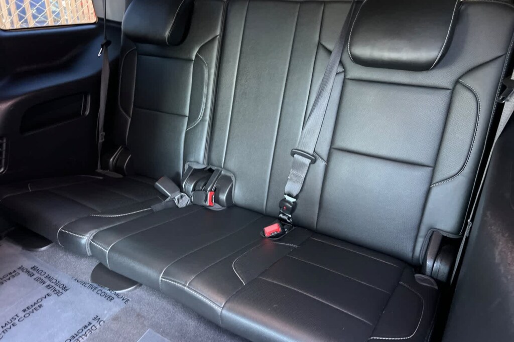 Features a, Premier trim. Nav System, Third Row Seat, Heated Leather Seats Back-Up Camera, Onboard Communications System, Auto-Off Headlights Rear Head Air Bag, Side Head Air Bag, Aluminum Wheels, Privacy Glass, Remote Trunk Release, Child Safety Locks, Heated Mirrors.. EcoTec3 5.3L V8 6-Speed Automatic Electronic with Overdrive RWD