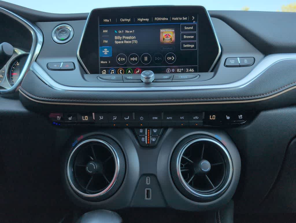 This Blazer Premier is nicely equipped with Preferred Equipment Group 0HD, Trailering Equipment (Heavy-Duty Cooling System, Hitch Guidance, and Hitch Guidance w/Hitch View), AWD, 4-Wheel Disc Brakes, 6-Way Power Front Passenger Seat Adjuster, 8 Speakers, ABS brakes, Air Conditioning, Alloy wheels, AM/FM radio: SiriusXM, Apple CarPlay/Android Auto, Auto High-beam Headlights, Auto tilt-away steering wheel, Auto-dimming door mirrors, Auto-dimming Rear-View mirror, Automatic temperature control, Bose Premium 8-Speaker Audio System Feature, Brake assist, Bumpers: body-color, Child-Seat-Sensing Airbag, Compass, Delay-off headlights, Driver door bin, Driver vanity mirror, Dual front impact airbags, Dual front side impact airbags, Electronic Stability Control, Emergency communication system: OnStar and Chevrolet connected services capable, Exterior Parking Camera Rear, Floor Rail System w/Adjustable Cargo Fence, Four wheel independent suspension, Front anti-roll bar, Front Bucket Seats, Front Center Armrest, Front dual zone A/C, Front reading lights, Fully automatic headlights, Garage door transmitter, Heated door mirrors, Heated Driver & Front Passenger Seats, Heated front seats, Heated rear seats, Heated steering wheel, High-Intensity Discharge Headlights, Illuminated entry, Knee airbag, Leather Shift Knob, Low tire pressure warning, Memory seat, Memory Settings For Driver Seat & Exterior Mirrors, Navigation System, Occupant sensing airbag, Outside temperature display, Overhead airbag, Overhead console, Panic alarm, Passenger door bin, Passenger vanity mirror, Perforated Leather-Appointed Seat Trim, Power door mirrors, Power driver seat, Power Liftgate, Power Panoramic Tilt-Sliding Sunroof, Power passenger seat, Power steering, Power windows, Radio data system, Radio: Chevrolet Infotainment 3 Plus System, Rear anti-roll bar, Rear reading lights, Rear seat center armrest, Rear window defroster, Rear window wiper, Remote keyless entry, Ride & Handling Suspension, Security system, SiriusXM w/360L, Speed control, Speed-sensing steering, Split folding rear seat, Spoiler, Steering wheel memory, Steering wheel mounted audio controls, Tachometer, Telescoping steering wheel, Tilt steering wheel, Traction control, Trip computer, Turn signal indicator mirrors, Variably intermittent wipers, Ventilated Driver & Front Passenger Seats, Ventilated front seats, Voltmeter, and Wheels: 20 Medium Android Machined-Face Aluminum. Price does not include licensing costs, registration fees, taxes and dealer doc fee of $899.50 which are to be paid by the consumer.