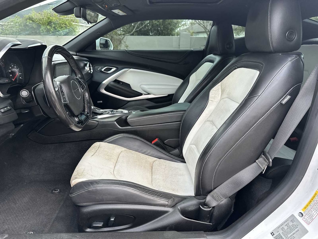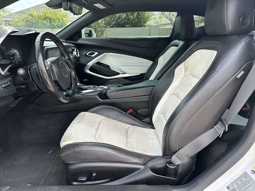 HOME OF THE LIFETIME WARRANTY! BUY WITH CONFIDENCE! WE LOVE TRADES! HASSLE FREE FINANCE PLANS FOR EVERYONE! PLEASE CALL TO ENSURE AVAILABLITY AS OUR INVENTORY CHANGES BY THE HOUR. CARFAX One-Owner. **TOUCHLESS DELIVERY - BUY FROM CONVENIENCE OF YOUR HOME**, HTTPS://WWW.DRIVEWAY.COM, HTTPS://WWW.CHEVYOFWESLEYCHAPEL.COM, New Feature, 18 Silver-Painted Aluminum Wheels, 2.77 Rear Axle Ratio, 4-Wheel Disc Brakes, 6-Way Power Front Passenger Seat Adjuster, 8-Way Power Driver Seat Adjuster, ABS brakes, Air Conditioning, All-Weather Cargo Mat w/Camaro Logo (LPO), Alloy wheels, Apple CarPlay/Android Auto, Automatic temperature control, Bluetoothî For Phone, Bose Premium 9-Speaker Audio System Feature, Brake assist, Bumpers: body-color, Ceramic White Interior Package, Compass, Dark Tint Tail Lamps, Delay-off headlights, Driver door bin, Driver vanity mirror, Dual front impact airbags, Dual front side impact airbags, Electronic Stability Control, Exterior Parking Camera Rear, Four wheel independent suspension, Front anti-roll bar, Front Bucket Seats, Front Center Armrest, Front dual zone A/C, Front reading lights, Front Sport Bucket Seats, Fully automatic headlights, Heated Driver & Front Passenger Seats, Heated front seats, Illuminated entry, Knee airbag, Leather Shift Knob, Leather-Trimmed Seat Trim, Low tire pressure warning, Occupant sensing airbag, Outside temperature display, Overhead airbag, Paddle-Shift Manual Controls, Panic alarm, Passenger door bin, Passenger vanity mirror, Power door mirrors, Power driver seat, Power passenger seat, Power steering, Power Sunroof, Power windows, Premium audio system: Chevrolet Infotainment System, Radio data system, Radio: Chevrolet Infotainment 3 Plus System, Rear anti-roll bar, Rear window defroster, Remote keyless entry, Remote Vehicle Starter System, Security system, SiriusXM w/360L, Speed control, Speed-sensing steering, Steering wheel mounted audio controls, Tachometer, Telescoping steering wheel, Tilt steering wheel, Tire Inflation Kit, Traction control, Trip computer, Variably intermittent wipers, Ventilated Driver & Front Passenger Seats, Ventilated front seats, Voltmeter.