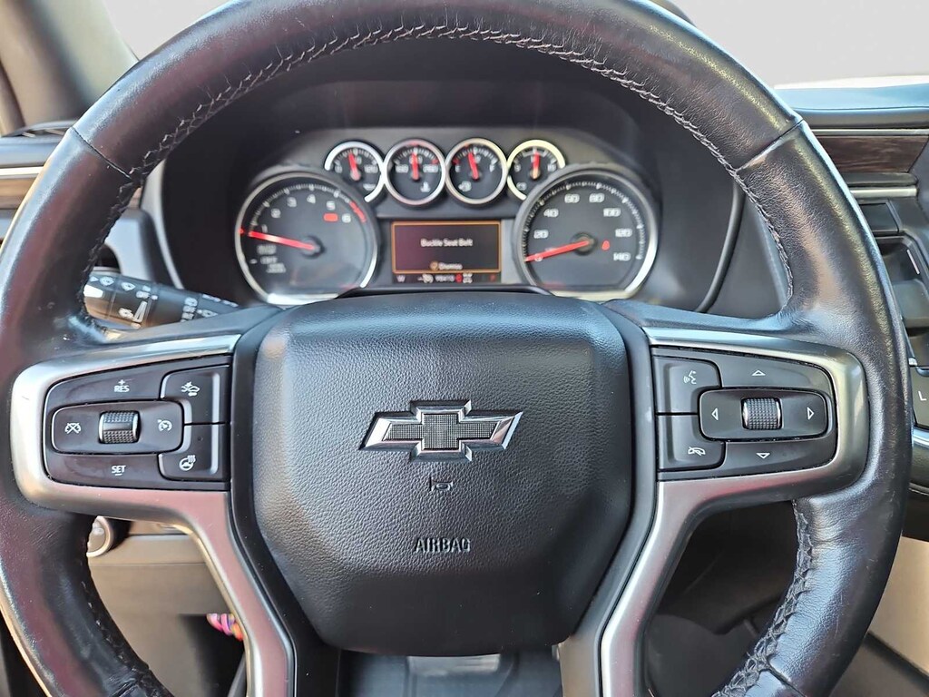 LUXURY PACKAGE includes (WPD) Driver Alert Package content, (UV2) HD Surround Vision, (UKK) Rear Pedestrian Alert, (A45) memory settings, (DXR) outside heated power-adjustable, power-folding, body-color mirrors with driver-side auto-dimming and integrated turn signal indicators, (N38) power tilt and telescopic steering column, (KI3) automatic heated steering wheel, (KA6) second row outboard heated seats, (ATT) second row power 60/40 split-folding bench seats and (AS8) third row power 60/40 split-folding bench seats, AUDIO SYSTEM, CHEVROLET INFOTAINMENT 3 PLUS SYSTEM, 10.2 DIAGONAL HD COLOR TOUCHSCREEN AM/FM stereo, Bluetooth® audio streaming for 2 active devices, Apple CarPlay® and Android Auto® capable, enhanced voice recognition, in-vehicle apps, cloud connected personalization for select infotainment and vehicle settings. Subscription required for enhanced and connected services after trial period. (STD), ENGINE, 5.3L ECOTEC3 V8 with Dynamic Fuel Management, Direct Injection and Variable Valve Timing, includes aluminum block construction (355 hp [265 kW] @ 5600 rpm, 383 lb-ft of torque [518 Nm] @ 4100 rpm) (STD), TRANSMISSION, 10-SPEED AUTOMATIC electronically controlled with overdrive, includes Traction Select System including tow/haul (Most vehicles built on or after 6-7-2021 with a V8 engine will have (NSS) Not Equipped with Automatic Stop/Start, which removes Automatic Stop/Start, Engine control stop/start disable button and its content.) (STD), DRIVER ALERT PACKAGE includes (UHX) Lane Keep Assist with Lane Departure Warning, (UKC) Lane Change Alert with Side Blind Zone Alert, (UFG) Rear Cross Traffic Alert and (UD5) Front and Rear Park Assist. Chevrolet Z71 with BLACK exterior and JET BLACK interior features a 8 Cylinder Engine with 355 HP at 5600 RPM*.