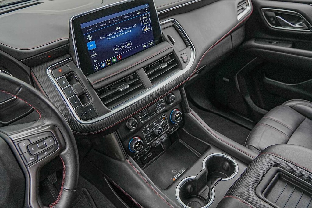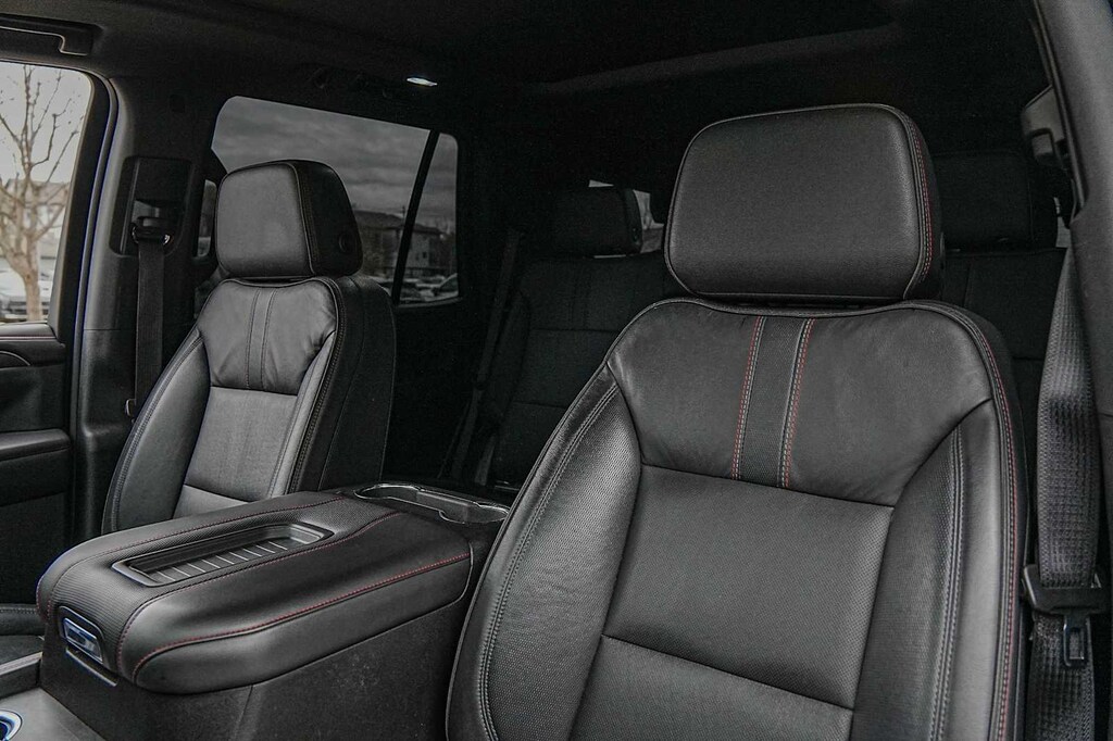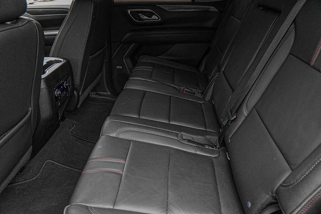 4WD, Shadow Gray Metallic, Jet Black Leather, 10-Way Power Driver & Passenger Seat Adjusters, 1st & 2nd Row Color-Keyed Carpeted Floor Mats, 2 USB Data Ports, 3.23 Rear Axle Ratio, 3rd row seats: split-bench, 4-Wheel Disc Brakes, 9 Speakers, ABS brakes, Air Conditioning, Alloy wheels, AM/FM radio: SiriusXM with 360L, Apple CarPlay/Android Auto, Auto High-beam Headlights, Auto-Dimming Inside Rear-View Mirror, Auto-dimming Rear-View mirror, Automatic temperature control, Bose 9-Speaker Stereo Audio System Feature, Brake assist, Bright Front & Rear Door Sill Plates, Bumpers: body-color, Color-Keyed Carpeting Floor Covering, Compass, Delay-off headlights, Driver & Front Outboard Passenger Airbags, Driver door bin, Driver vanity mirror, Dual front impact airbags, Dual front side impact airbags, Electronic Stability Control, Emergency communication system: OnStar and Chevrolet connected services capable, Floor Console w/Storage Area, Four wheel independent suspension, Front anti-roll bar, Front Bucket Seats, Front Center Armrest, Front dual zone A/C, Front High-Back Reclining Bucket Seats, Front reading lights, Fully automatic headlights, Garage door transmitter, Hands-Free Rear Power Programmable Liftgate, HD Radio, Heated door mirrors, Heated Driver & Front Passenger Seats, Heated Front Seats, Illuminated entry, Infotainment Display, Leather steering wheel, Leather-Wrapped Steering Wheel, LED Daytime Running Lamps, Low tire pressure warning, Memory seat, Memory Settings for Driver, Occupant sensing airbag, Outside temperature display, Overhead airbag, Overhead console, Panic alarm, Passenger door bin, Passenger vanity mirror, Perforated Leather Seat Trim, Power door mirrors, Power driver seat, Power Liftgate, Power Passenger Seat, Power steering, Power windows, Premium audio system: Chevrolet Infotainment 3, Premium Smooth Ride Suspension, Radio: Chevrolet Infotainment 3 Plus System, Rain sensing wipers, Rear air conditioning, Rear anti-roll bar, Rear reading lights, Rear seat center armrest, Rear window defroster, Rear window wiper, Remote keyless entry, Remote Start, Roof rack: rails only, Security system, Set of 4 Wheel Locks (LPO), SiriusXM Radio w/360L, Speed control, Speed-sensing steering, Split Folding Fear Seat, Spoiler, Steering wheel mounted audio controls, Tachometer, Telescoping steering wheel, Tilt steering wheel, Traction control, Trip computer, Universal Home Remote, Variably intermittent wipers, Voltmeter, Wheels: 22 x 9 Bright Machined, 4WD, Shadow Gray Metallic, Jet Black Leather.