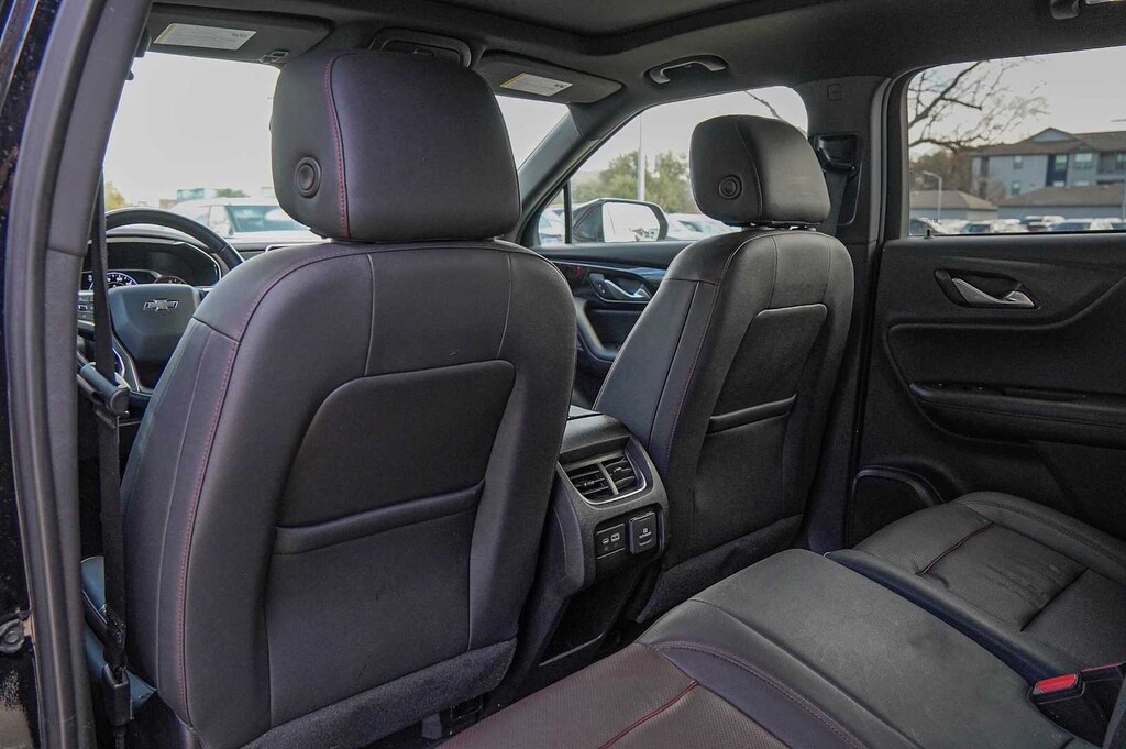 AWD, 3.49 Final Drive Axle Ratio, 4-Wheel Disc Brakes, 6 Speakers, 6-Speaker Audio System Feature, 6-Way Power Front Passenger Seat Adjuster, ABS brakes, Air Conditioning, Alloy wheels, AM/FM radio: SiriusXM with 360L, Apple CarPlay/Android Auto, Auto High-beam Headlights, Auto-dimming door mirrors, Auto-dimming Rear-View mirror, Automatic temperature control, Brake assist, Bumpers: body-color, Child-Seat-Sensing Airbag, Compass, Delay-off headlights, Driver door bin, Driver vanity mirror, Dual front impact airbags, Dual front side impact airbags, Electronic Stability Control, Emergency communication system: OnStar and Chevrolet connected services capable, Enhanced Convenience Package, Exterior Parking Camera Rear, Four wheel independent suspension, Front anti-roll bar, Front Bucket Seats, Front Center Armrest, Front dual zone A/C, Front reading lights, Fully automatic headlights, Garage door transmitter, Heated door mirrors, Heated Driver & Front Passenger Seats, Heated Front Seats, Heated Rear Outboard Seating Positions, Heated Steering Wheel, Heated Steering Wheel, High-Intensity Discharge Headlights, Illuminated entry, Knee airbag, Leather Shift Knob, Low tire pressure warning, Memory Settings For Driver Seat & Exterior Mirrors, Navigation System, Not Equipped w/Driver & Fr Passenger Heated Seats, Not Equipped w/Heated Rear Outboard Seats, Not Equipped w/Heated Steering Wheel, Not Equipped w/Rear Park Assist, Occupant sensing airbag, Outside temperature display, Overhead airbag, Overhead console, Panic alarm, Passenger door bin, Passenger vanity mirror, Perforated Leather-Appointed Seat Trim, Power door mirrors, Power driver seat, Power Liftgate, Power Panoramic Tilt-Sliding Sunroof, Power Passenger Seat, Power steering, Power Tilt & Telescoping Steering Column, Power windows, Preferred Equipment Group 1RS, Radio data system, Radio: Chevrolet Infotainment 3 Plus System, Rear anti-roll bar, Rear reading lights, Rear seat center armrest, Rear window defroster, Rear window wiper, Remote keyless entry, Ride & Handling Suspension, Security system, SiriusXM w/360L, Speed control, Speed-sensing steering, Split Folding Fear Seat, Spoiler, Steering wheel mounted audio controls, Tachometer, Telescoping steering wheel, Tilt steering wheel, Traction control, Trip computer, Turn signal indicator mirrors, Variably intermittent wipers, Ventilated Driver & Front Passenger Seats, Voltmeter, Wheels: 20 Dark Android Machined-Face Aluminum, Wheels: 21 Gloss Black Aluminum, AWD.