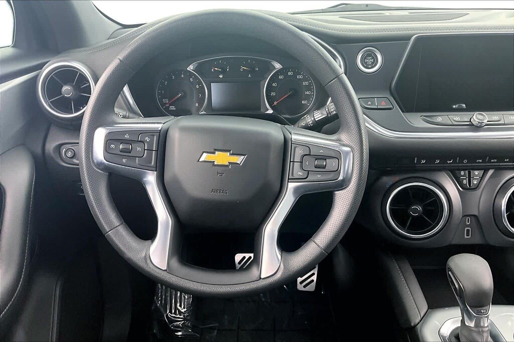 Preferred Equipment Group 2LT, Blazer LT, AWD, 6-Speaker Audio System Feature, Apple CarPlay/Android Auto, Radio: Chevrolet Infotainment 3 System, SiriusXM Radio, 170 Amp Alternator, 3.47 Final Drive Axle Ratio, 4-Wheel Disc Brakes, 6 Speakers, ABS brakes, Air Conditioning, Alloy wheels, AM/FM radio: SiriusXM, Auto High-beam Headlights, Automatic temperature control, Brake assist, Bumpers: body-color, Child-Seat-Sensing Airbag, Compass, Delay-off headlights, Driver door bin, Driver vanity mirror, Dual front impact airbags, Dual front side impact airbags, Electronic Stability Control, Emergency communication system: OnStar and Chevrolet connected services capable, Exterior Parking Camera Rear, Four wheel independent suspension, Front anti-roll bar, Front Bucket Seats, Front Center Armrest, Front dual zone A/C, Front reading lights, Fully automatic headlights, Heated door mirrors, High-Intensity Discharge Headlights, Illuminated entry, Knee airbag, Leather Shift Knob, Low tire pressure warning, Occupant sensing airbag, Outside temperature display, Overhead airbag, Overhead console, Panic alarm, Passenger door bin, Passenger vanity mirror, Power door mirrors, Power driver seat, Power steering, Power windows, Premium Cloth Seat Trim, Radio data system, Rear anti-roll bar, Rear reading lights, Rear seat center armrest, Rear window defroster, Rear window wiper, Remote keyless entry, Ride & Handling Suspension, Security system, Speed control, Speed-sensing steering, Split folding rear seat, Spoiler, Steering wheel mounted audio controls, Tachometer, Telescoping steering wheel, Tilt steering wheel, Traction control, Trip computer, Variably intermittent wipers, Voltmeter, Wheels: 18 Bright Silver Aluminum, and Wheels: 20 Gloss Black Aluminum. Local Trade, Blazer LT, AWD, 6-Speaker Audio System Feature, Apple CarPlay/Android Auto, Preferred Equipment Group 2LT, Radio: Chevrolet Infotainment 3 System, SiriusXM Radio.