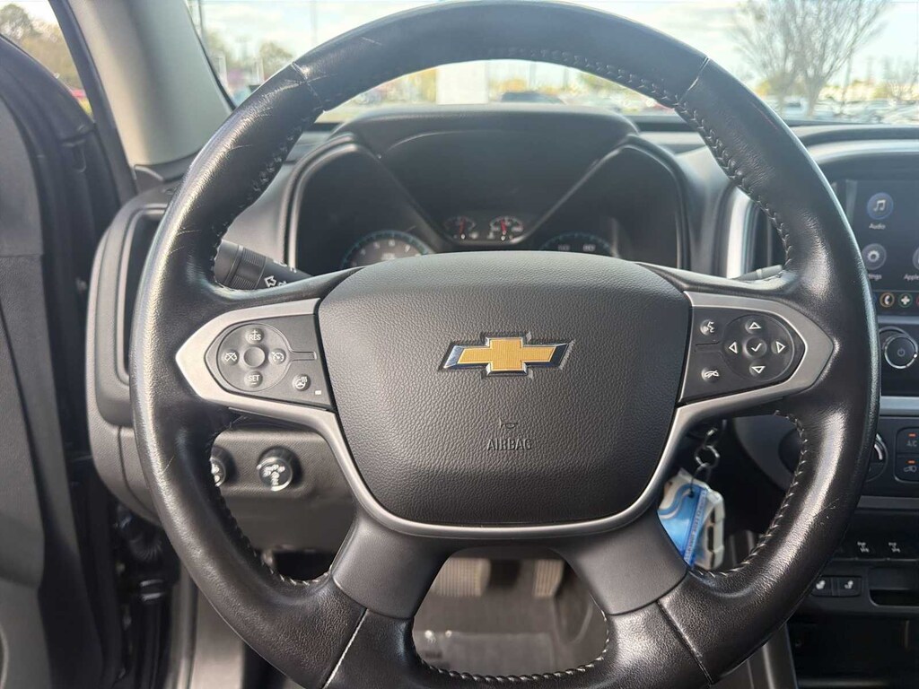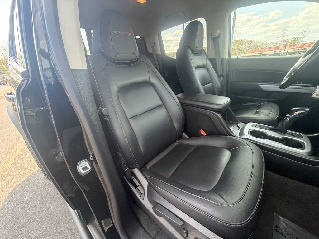 Colorado ZR2 is nicely equipped with Heavy-Duty Trailering Package, Preferred Equipment Group 4ZR (Black Rear Bumpers, Black Spray-On Bedliner w/Chevrolet Logo, Driver-Selectable Full-Locking Front Differential, Driver-Selectable Full-Locking Rear Differential, Hitch Guidance, Integrated Trailer Brake Controller, and Tow/Haul Mode), ZR2 Midnight Special Edition (Off-Road Lights (LPO), Off-Road Sport Bar (LPO) (SCU), and Wheels: 17 x 8 Gloss Black Aluminum), ZR2 Off-Road Package, Colorado ZR2, 4D Crew Cab, V6, 8-Speed Automatic, 4WD, Black, Black Leather, 3.42 Rear Axle Ratio, 4-Way Power Front Passenger Seat Adjuster, 4-Wheel Disc Brakes, 6 Speakers, 6-Speaker Audio System Feature, ABS brakes, Air Conditioning, Alloy wheels, AM/FM radio: SiriusXM, Apple CarPlay/Android Auto, Auto-dimming Rear-View mirror, Automatic temperature control, Compass, Delay-off headlights, Driver 6-Way Power Seat Adjuster, Driver door bin, Driver vanity mirror, Dual front impact airbags, Dual front side impact airbags, Electronic Stability Control, Exterior Parking Camera Rear, Front anti-roll bar, Front Bucket Seats, Front Center Armrest, Front License Plate Kit, Front reading lights, Front wheel independent suspension, Fully automatic headlights, HD Radio, Heated door mirrors, Heated steering wheel, Illuminated entry, Leather-Appointed Seat Trim, Low tire pressure warning, Occupant sensing airbag, Outside temperature display, Overhead airbag, Overhead console, Panic alarm, Passenger door bin, Passenger vanity mirror, Power door mirrors, Power Driver Lumbar Control Seat Adjuster, Power driver seat, Power Passenger Lumbar Control Seat Adjuster, Power passenger seat, Power steering, Power windows, Premium audio system: Chevrolet Infotainment 3 Plus, Radio data system, Radio: Chevrolet Infotainment 3 Plus System, Rear reading lights, Rear seat center armrest, Rear step bumper, Rear window defroster, Remote keyless entry, Security system, SiriusXM Radio, Speed control, Speed-sensing steering, Steering wheel mounted audio controls, Tachometer, Telescoping steering wheel, Tilt steering wheel, Traction control, Trip computer, Variably intermittent wipers, Wheels: 17 x 8 Graphite & Oxide Gold Aluminum, and Wireless Charging for Compatible Cell Phones.