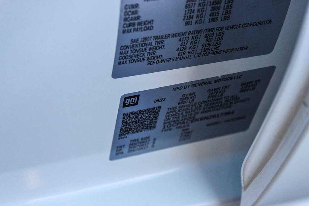 Convenience Package (10-Way Power Driver Seat w/Lumbar, 120-Volt Bed Mounted Power Outlet, 120-Volt Instrument Panel Power Outlet, Dual Rear USB Ports (Charge Only), Dual-Zone Automatic Climate Control, Heated Driver & Front Outboard Passenger Seats, Heated Steering Wheel, Keyless Open & Start, Leather Wrapped Steering Wheel, and Manual Tilt/Telescoping Steering Column), Preferred Equipment Group 1LT (12.3 Multicolor Reconfigurable Digital Display, All-Star Edition, Auto-Locking Rear Differential, Bluetoothî For Phone, Chevrolet Connected Access Capable, Chrome Mirror Caps, Color-Keyed Carpeting Floor Covering, Compass, Deep-Tinted Glass, Electrical Steering Column Lock, Electronic Cruise Control, EZ Lift Power Lock & Release Tailgate, Front Rubberized Vinyl Floor Mats, HD Rear Vision Camera, Heated Power-Adjustable Outside Mirrors, Inside Rear-View Mirror w/Tilt, LED Cargo Area Lighting, OnStar & Chevrolet Connected Services Capable, Power Front Windows w/Driver Express Up/Down, Power Front Windows w/Passenger Express Down, Power Rear Windows w/Express Down, Rear 60/40 Folding Bench Seat (Folds Up), Rear Rubberized-Vinyl Floor Mats, SiriusXM w/360L, Standard Tailgate, Steering Wheel Audio Controls, Wi-Fi Hot Spot Capable, and Wireless Phone Projection), Remote Start Package (Electric Rear-Window Defogger, Remote Vehicle Starter System, and Theft Deterrent System (Unauthorized Entry)), Standard Suspension Package, Trailering Package (Hitch Guidance), 8-Speed Automatic, Black Cloth, 220 Amp Alternator, 3.42 Rear Axle Ratio, 4-Wheel Disc Brakes, 40/20/40 Front Split-Bench Seat, 6 Speakers, 6-Speaker Audio System, ABS brakes, Air Conditioning, Alloy wheels, AM/FM radio: SiriusXM with 360L, Apple CarPlay/Android Auto, Auto High-beam Headlights, Automatic Emergency Braking, Automatic temperature control, Brake assist, Bumpers: chrome, Cloth Seat Trim, Delay-off headlights, Driver door bin, Driver vanity mirror, Dual front impact airbags, Dual front side impact airbags, Electronic Stability Control, Following Distance Indicator, Forward Collision Alert, Front anti-roll bar, Front Center Armrest w/Storage, Front dual zone A/C, Front License Plate Kit, Front Pedestrian Braking, Front reading lights, Front wheel independent suspension, Fully automatic headlights, Heated door mirrors, Heated front seats, Heated steering wheel, Illuminated entry, IntelliBeam Automatic High Beam On/Off, Lane Keep Assist w/Lane Departure Warning, Low tire pressure warning, Not Equipped w/Steering Column Lock, Occupant sensing airbag, Outside temperature display, Overhead airbag, Overhead console, Panic alarm, Passenger door bin, Passenger vanity mirror, Power door mirrors, Power driver seat, Power steering, Power windows, Premium audio system: Chevrolet Infotainment 3 Premium, Radio data system, Radio: Chevrolet Infotainment 3 Premium System, Rear reading lights, Rear step bumper, Rear window defroster, Remote keyless entry, Security system, Speed control, Speed-sensing steering, Split folding rear seat, Steering wheel mounted audio controls, Tachometer, Telescoping steering wheel, Tilt steering wheel, Traction control, Trip computer, Variably intermittent wipers, Voltmeter, and Wheels: 17 x 8 Bright Silver Painted Aluminum. 8-Speed Automatic, Black Cloth. 2.7L Turbo 8-Speed Automatic RWD