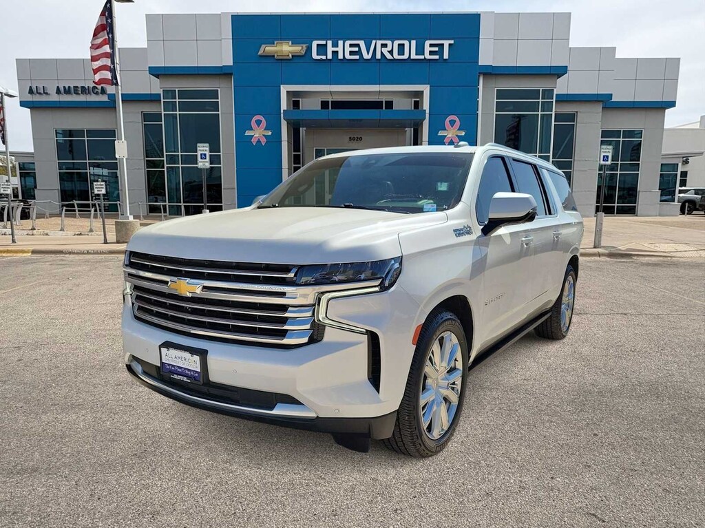ASSIST STEPS, POWER-RETRACTABLE with perimeter lighting, SUNROOF, POWER PANORAMIC, DUAL-PANE, TILT-SLIDING with express-open and close and power sunshade, SUSPENSION, AIR RIDE ADAPTIVE, AUDIO SYSTEM, CHEVROLET INFOTAINMENT 3 PREMIUM SYSTEM WITH GOOGLE BUILT-IN 10.2 diagonal HD color touchscreen, includes multi-touch display, AM/FM stereo, Bluetooth® streaming audio for music and most phones; featuring wireless Android Auto® and Apple CarPlay® capability for compatible phones, advanced voice recognition, in-vehicle apps, personalized profiles for infotainment and vehicle settings.) (STD), ENGINE, 6.2L ECOTEC3 V8 with Dynamic Fuel Management, Direct Injection and Variable Valve Timing, includes aluminum block construction (420 hp [313 kW] @ 5600 rpm, 460 lb-ft of torque [624 Nm] @ 4100 rpm) (STD), TRANSMISSION, 10-SPEED AUTOMATIC electronically controlled with overdrive, includes Traction Select System including tow/haul (Standard with (L87) 6.2L EcoTec3 V8 engine only.) (STD), ADVANCED TRAILERING PACKAGE includes (PZ8) Hitch Guidance with Hitch View, (JL1) trailer brake controller and (UET) Smart Trailer Integration Indicator Also includes (UKV) Extended Side Blind Zone Alert.). Chevrolet High Country with Iridescent Pearl Tricoat exterior and Jet Black/Mocha interior features a 8 Cylinder Engine with 420 HP at 5600 RPM*.