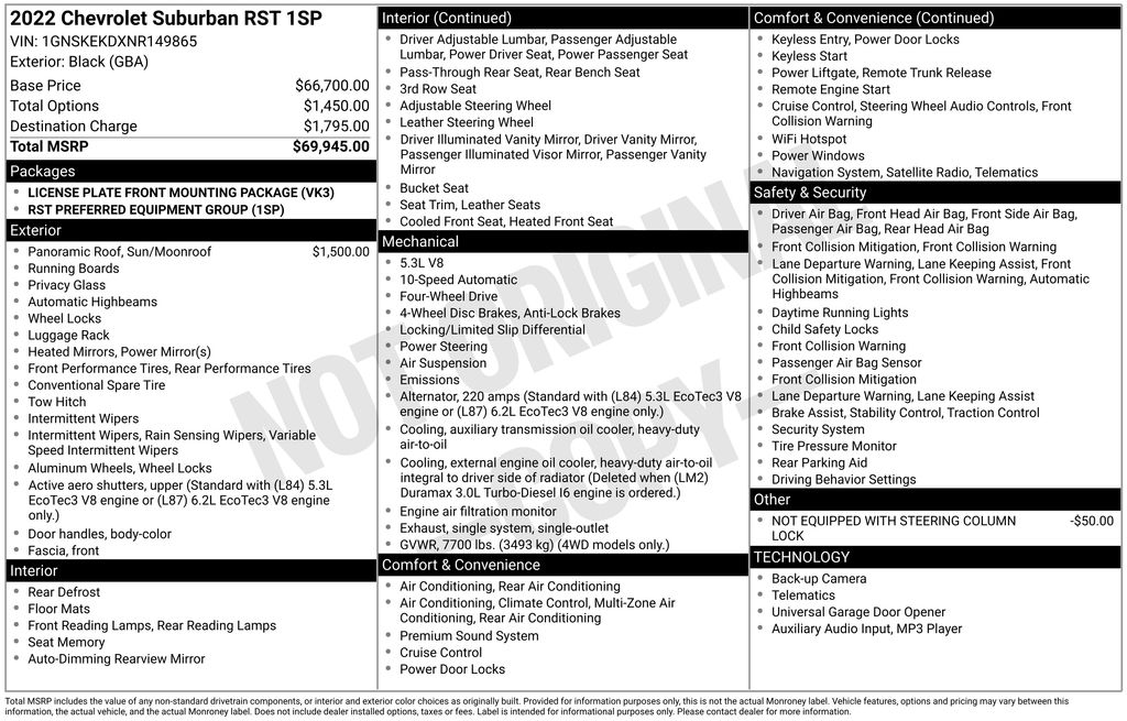 Elevate your driving experience with this exceptional 2022 Chevrolet Suburban RST. Boasting a sleek Black exterior and a powerful EcoTec3 5.3L V8 engine paired with a 10-Speed Automatic transmission, this SUV delivers a thrilling and efficient performance on the road.