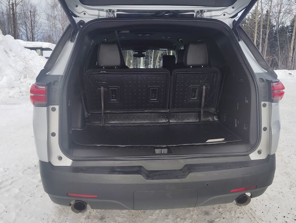 LPO, FLOOR LINER PACKAGE includes (RIA) front and second row all-weather floor liner, LPO, (RIB) third row all-weather floor liner, LPO and (CAV) integrated cargo liner, LPO, LT LEATHER PREFERRED EQUIPMENT GROUP Includes Standard Equipment, AUDIO SYSTEM, CHEVROLET INFOTAINMENT 3 PLUS SYSTEM 8 diagonal HD color touchscreen, AM/FM stereo, Bluetooth® audio streaming for 2 active devices, Apple CarPlay® and Android Auto® capable, voice recognition, in-vehicle apps, cloud connected personalization for select infotainment and vehicle settings. Subscription required for enhanced and connected services after trial period (STD), ENGINE, 3.6L V6, SIDI, VVT (310 hp [232.0 kW] @ 6800 rpm, 266 lb-ft of torque [361 N-m] @ 2800 rpm) (STD), TRANSMISSION, 9-SPEED AUTOMATIC (STD). Chevrolet LT Leather with Silver Ice Metallic exterior and Jet Black interior features a V6 Cylinder Engine with 310 HP at 6800 RPM*.