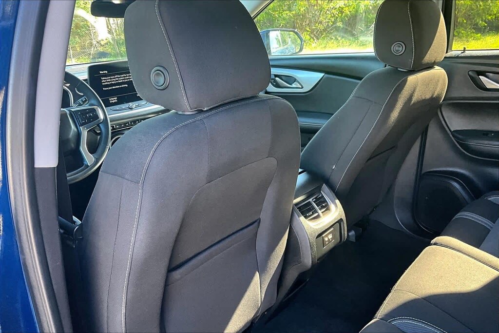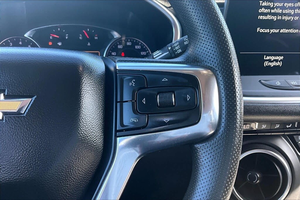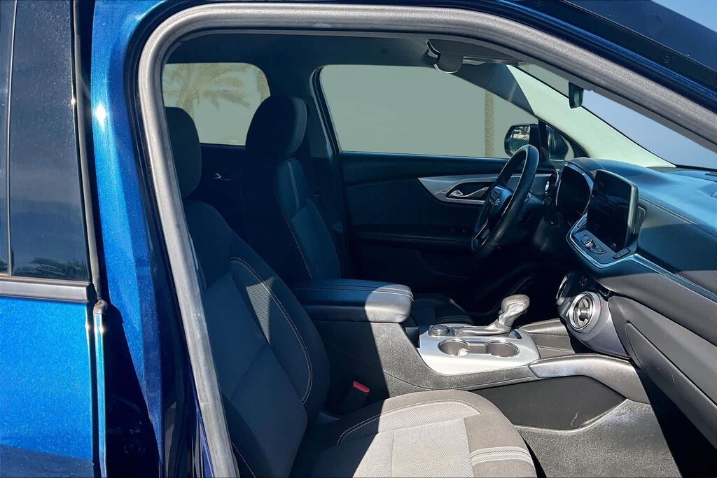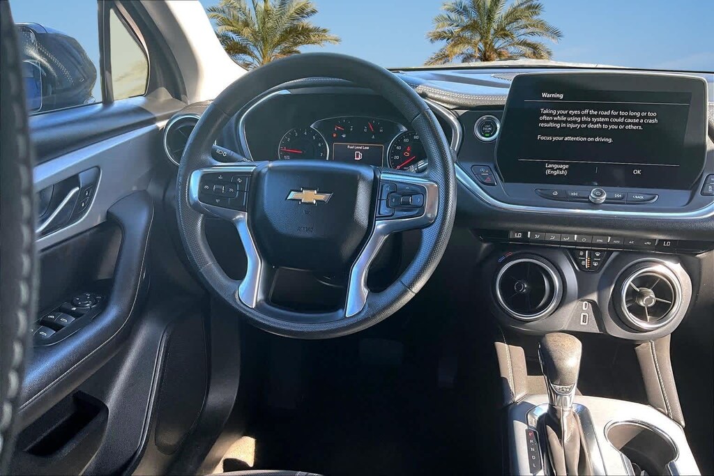FRESH OIL CHANGE, 170 Amp Alternator, 3.47 Final Drive Axle Ratio, 4-Way Manual Front Passenger Seat Adjuster, 4-Wheel Disc Brakes, 6 Speakers, 6-Speaker Audio System Feature, 8-Way Power Driver Seat Adjuster, ABS brakes, Air Conditioning, Alloy wheels, AM/FM radio: SiriusXM with 360L, Apple CarPlay/Android Auto, Auto High-beam Headlights, Automatic temperature control, Brake assist, Bumpers: body-color, Child-Seat-Sensing Airbag, Compass, Delay-off headlights, Driver door bin, Driver vanity mirror, Dual front impact airbags, Dual front side impact airbags, Electronic Stability Control, Emergency communication system: OnStar and Chevrolet connected services capable, Four wheel independent suspension, Front anti-roll bar, Front Bucket Seats, Front Center Armrest, Front dual zone A/C, Front reading lights, Fully automatic headlights, Heated door mirrors, Illuminated entry, Knee airbag, Leather Shift Knob, Low tire pressure warning, Occupant sensing airbag, Outside temperature display, Overhead airbag, Overhead console, Panic alarm, Passenger door bin, Passenger vanity mirror, Power door mirrors, Power Driver Lumbar Control, Power driver seat, Power steering, Power windows, Preferred Equipment Group 2LT, Premium audio system: Chevrolet Infotainment 3 Plus, Premium Cloth Seat Trim, Radio data system, Radio: Chevrolet Infotainment 3 Plus System, Rear anti-roll bar, Rear reading lights, Rear seat center armrest, Rear window defroster, Rear window wiper, Remote keyless entry, Ride & Handling Suspension, Security system, SiriusXM w/360L, Speed control, Speed-sensing steering, Split folding rear seat, Spoiler, Steering wheel mounted audio controls, Tachometer, Telescoping steering wheel, Tilt steering wheel, Traction control, Trip computer, Variably intermittent wipers, Voltmeter, Wheels: 18 Grazen Metallic Aluminum. 22/29 City/Highway MPG Blue Glow Metallic 2023 Chevrolet Blazer LT FWD 9-Speed Automatic with Overdrive 2.0L Turbocharged